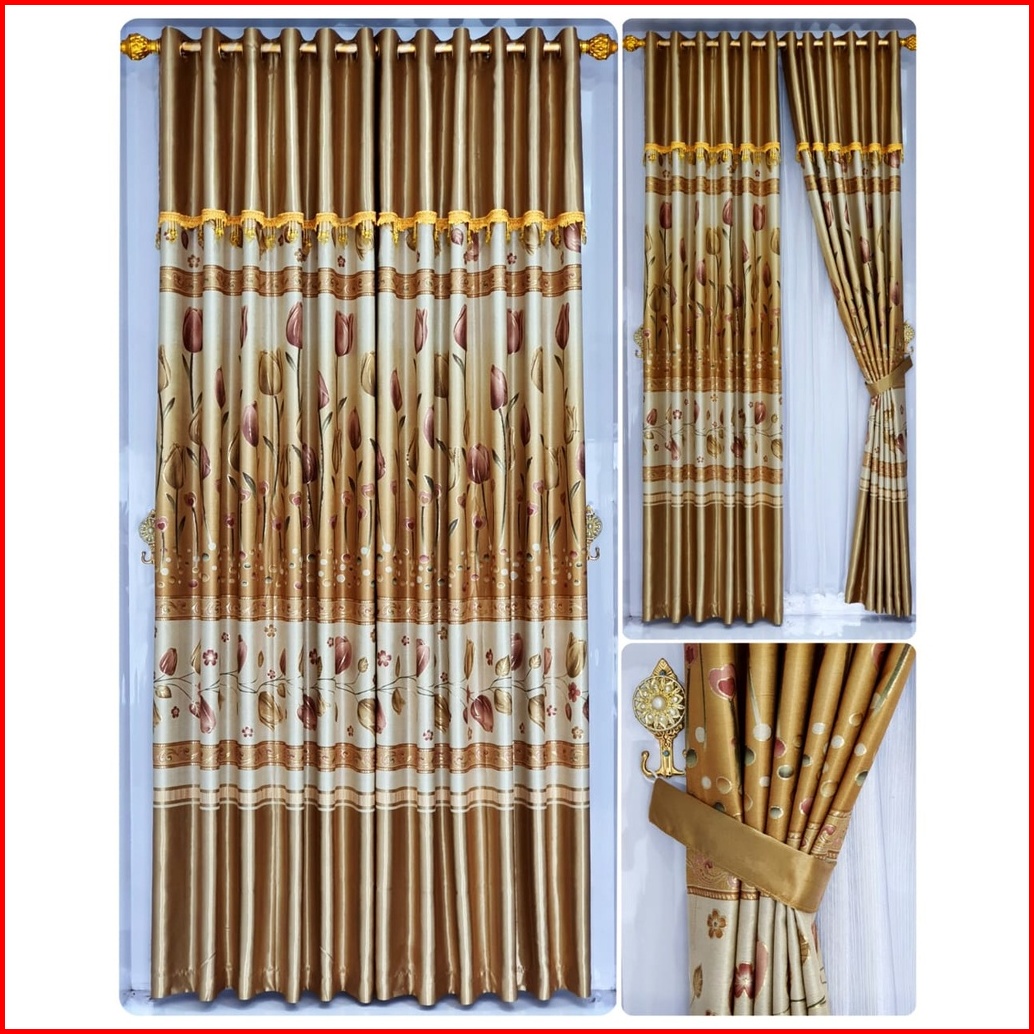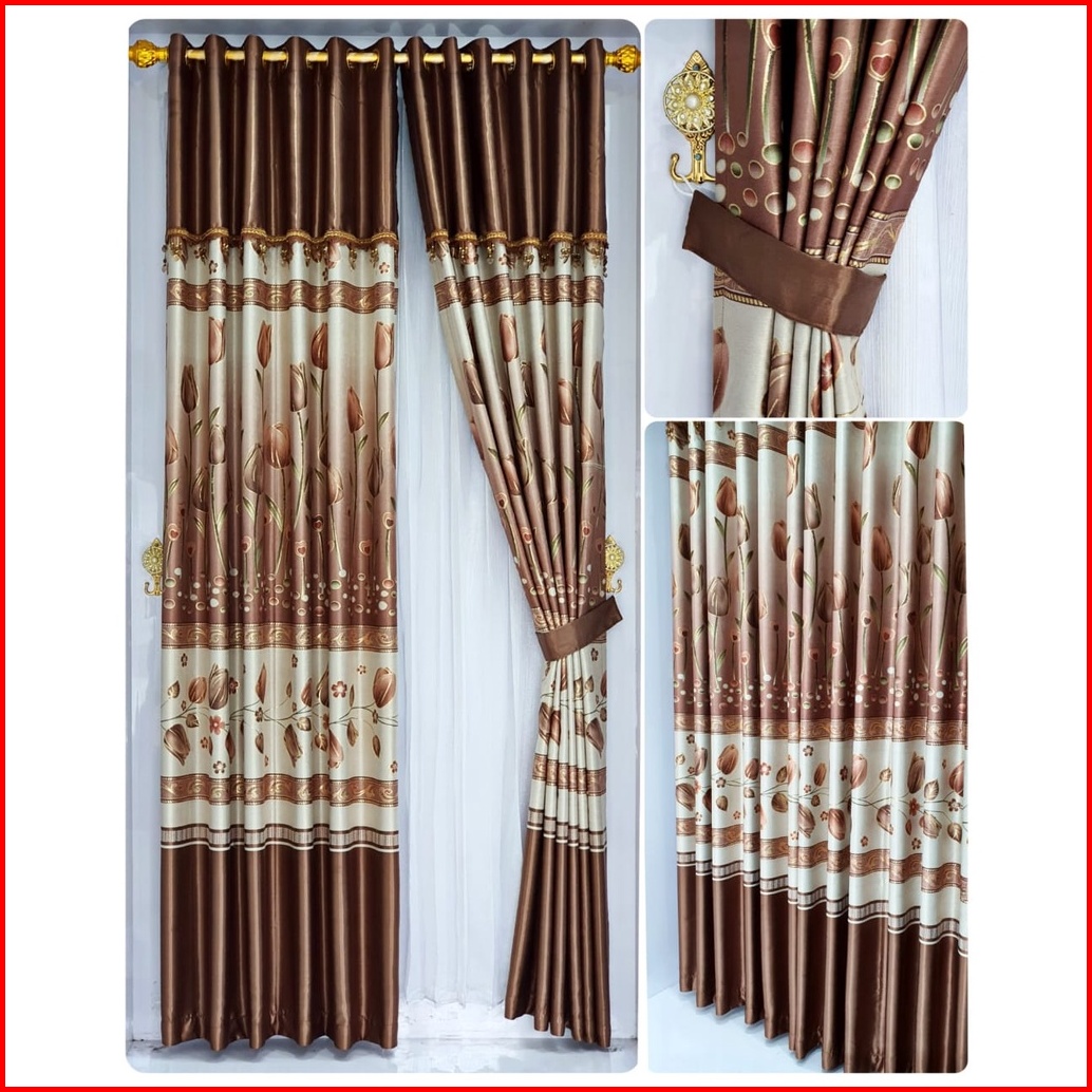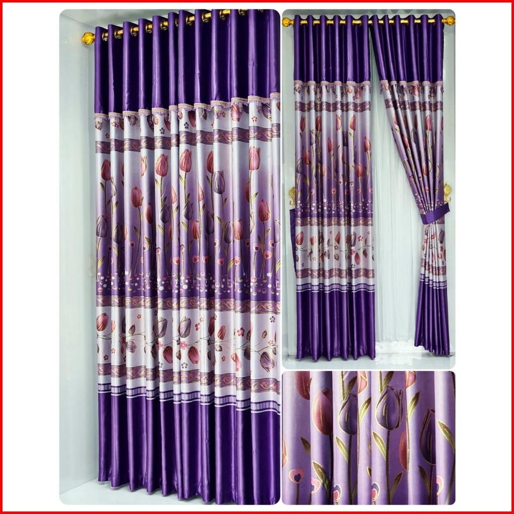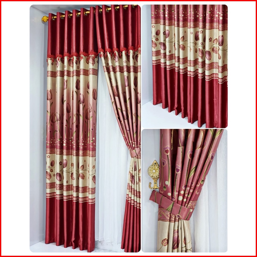 Gorden Jendela Premium Tebal Aesthetic Bunga Tulip Poni Mewah Pintu Kamar Minimalis Panjang 225x135