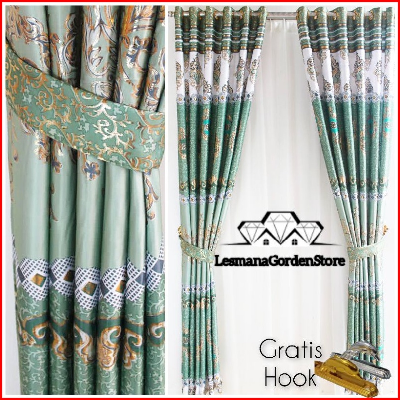 Gorden Korden Jendela Pintu Kamar New Arival Black Out Printing Parero Hijau Tinggi 230cm