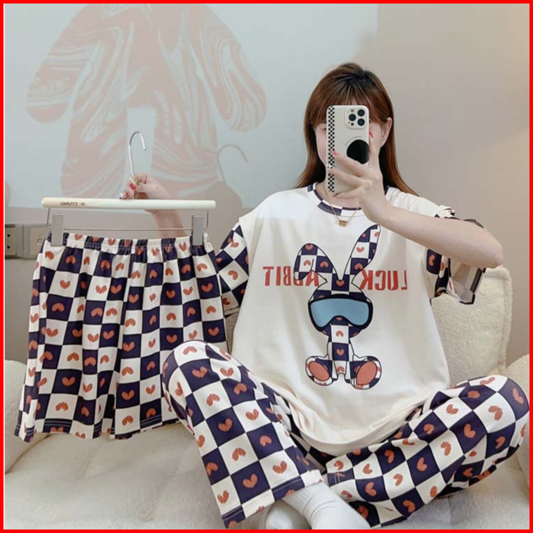 2-5xl Setelan Baju Tidur Wanita Piyama Wanita Cp Pp Lengan Pendek Celana Panjang Piyama 3 In 1 Piyama Lengan Pendek Baju