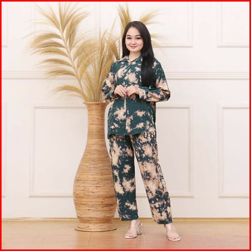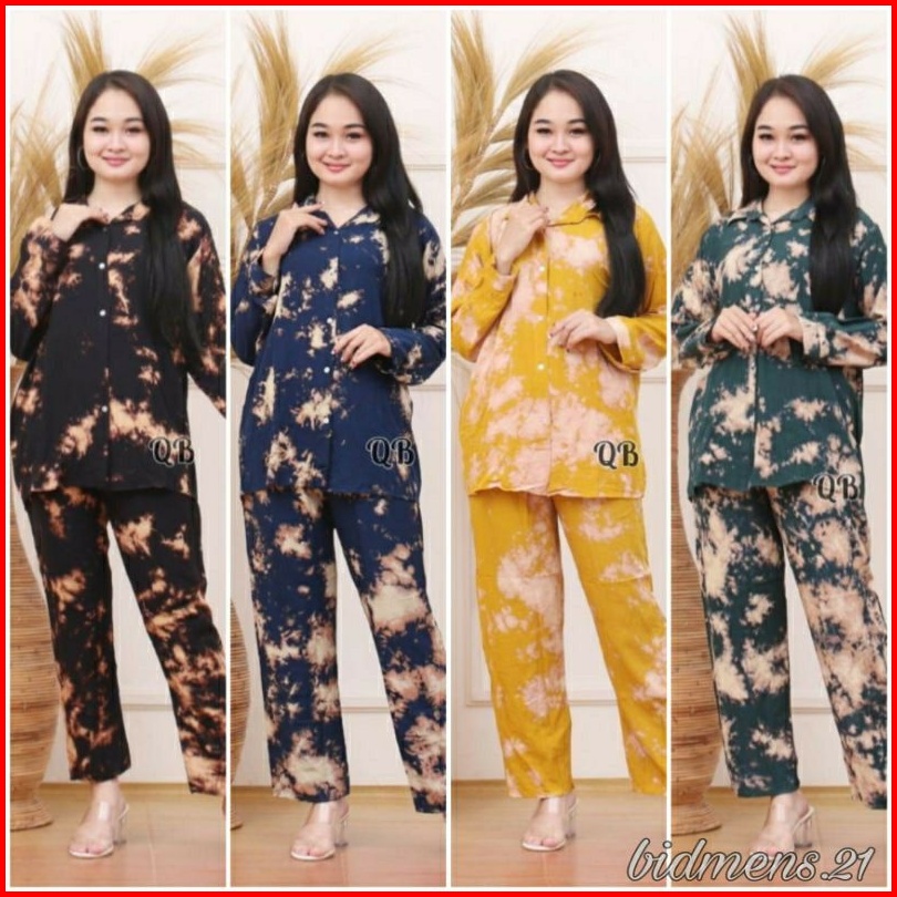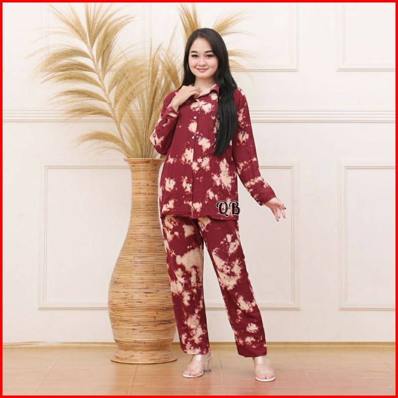 Premium Baju Tidur Piyama Pajamas One Set Rayon Viscose Tie Dye Motif Jumbo