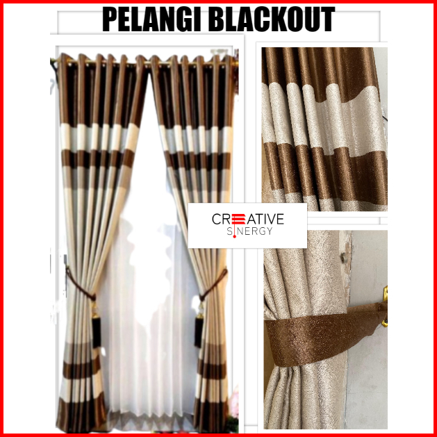 Gorden Jendela Pintu Panjang Pendek Blackout Tebal Import Motif Minimalis Pelangi 6 Gelombang 12ring