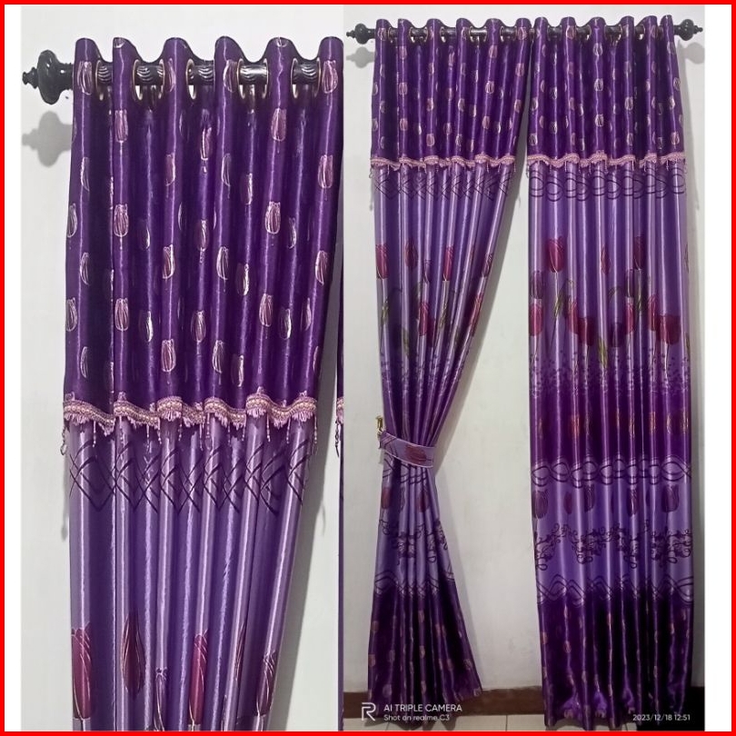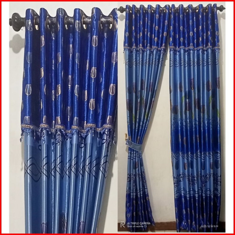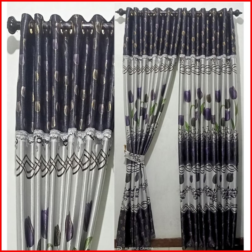 Gorden Jendela Pintu Kamar Kain Blackout Griter Bunga Print