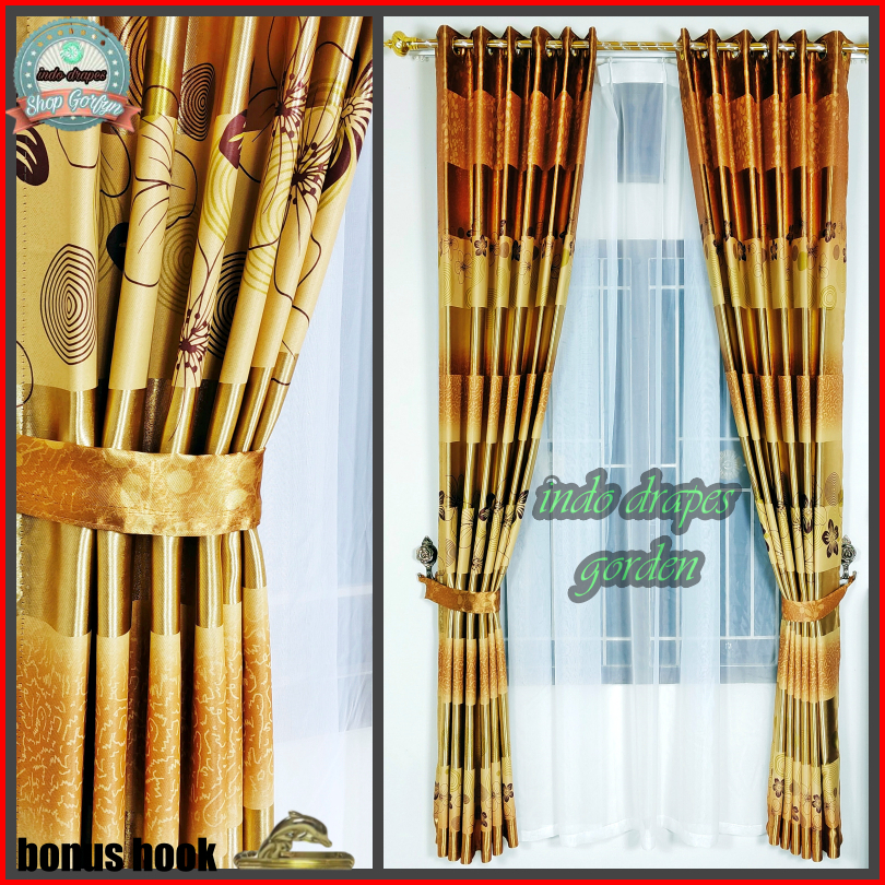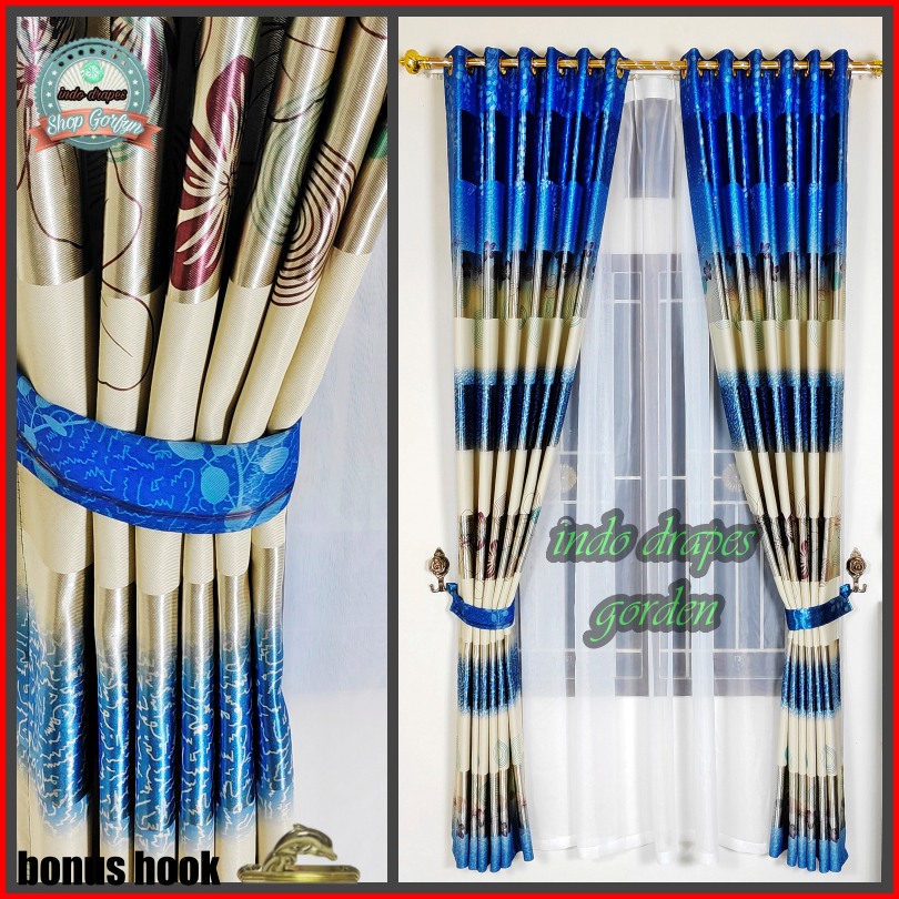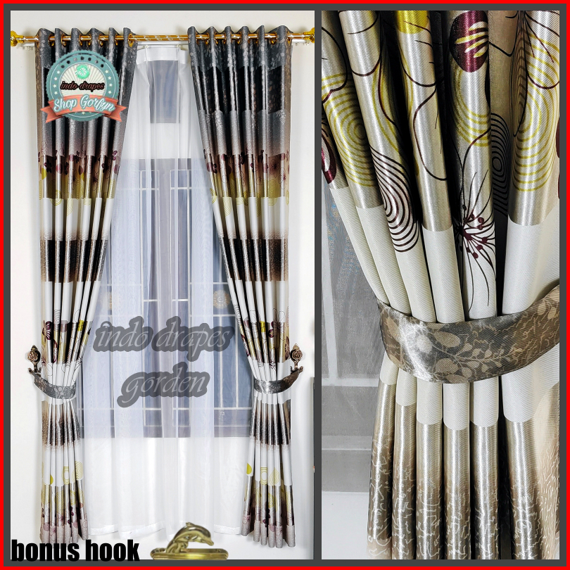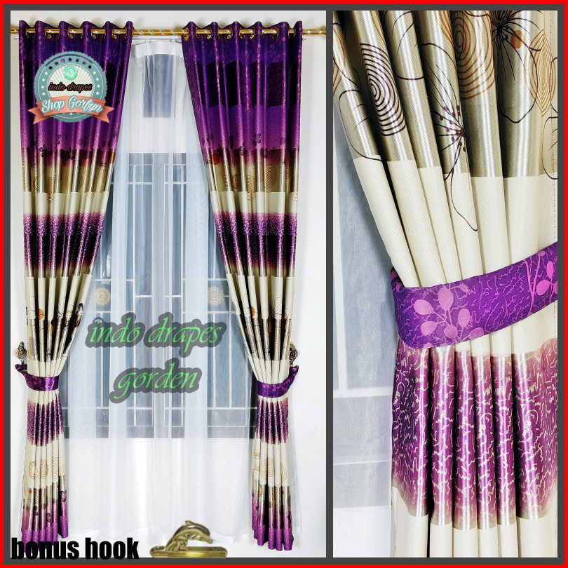 Gorden Blackout Import Printing Ungu Model Smokring Ukuran Lebar 130 Cm Tinggi 230 Cm
