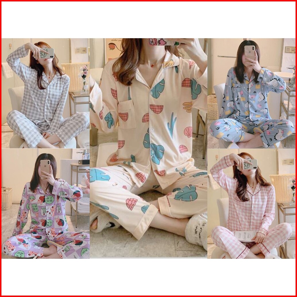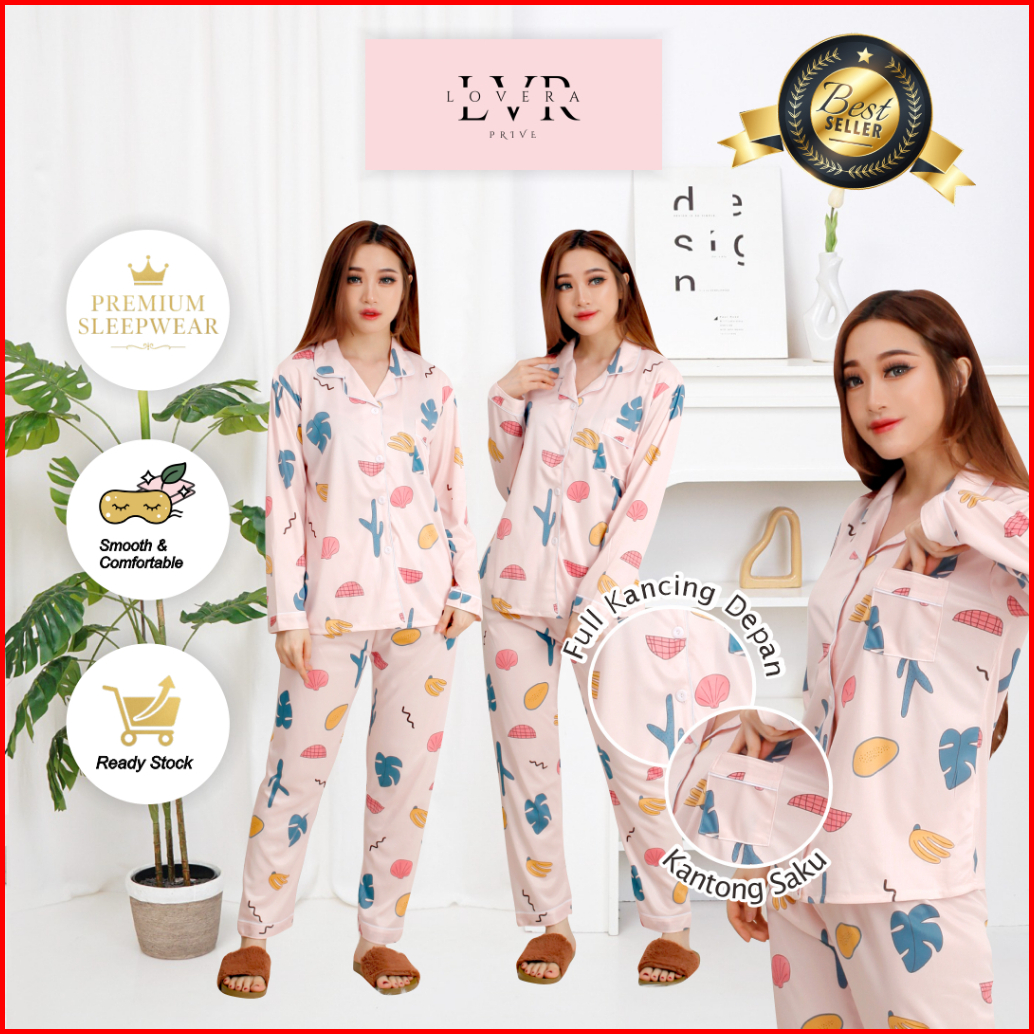 Lovera Baju Tidur Piyama Set Kemeja Pp Lengan Panjang Celana Panjang Premium Part 2