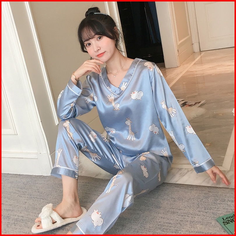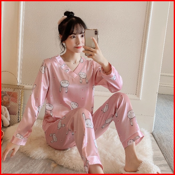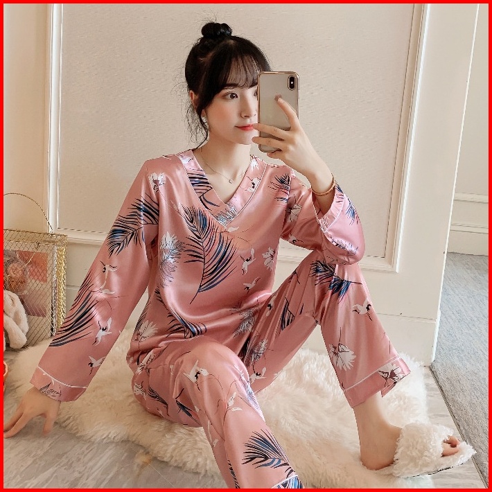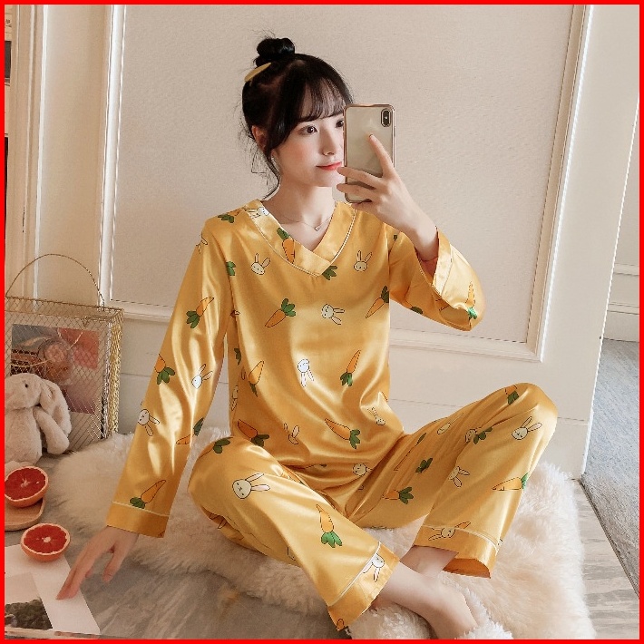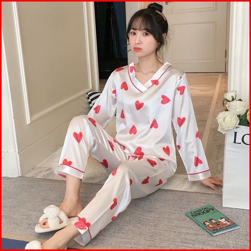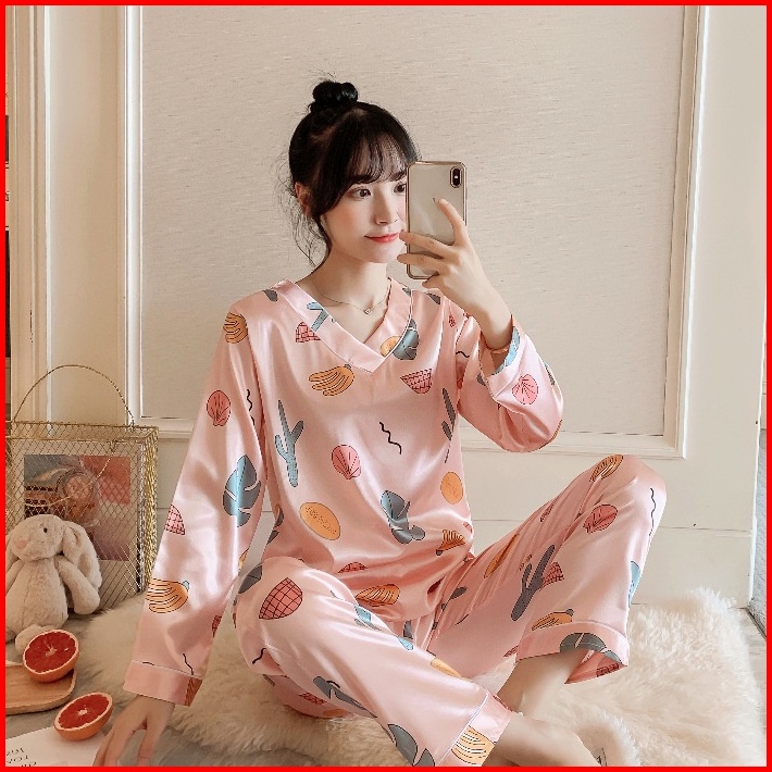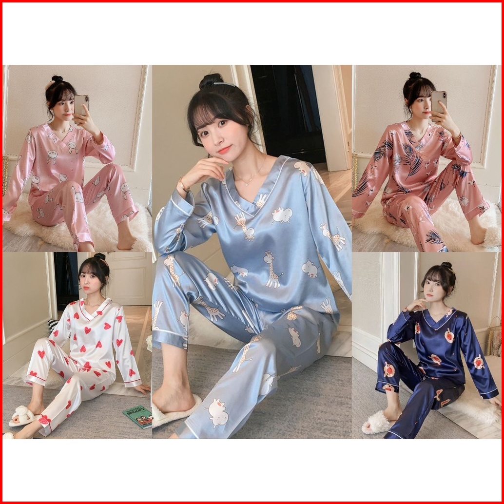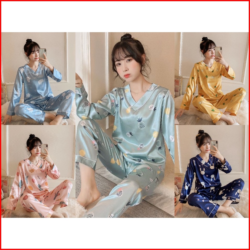 Lovera Set Baju Tidur Bahan Satin Pp Lengan Panjang Celana Panjang