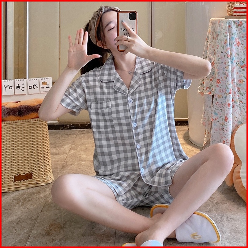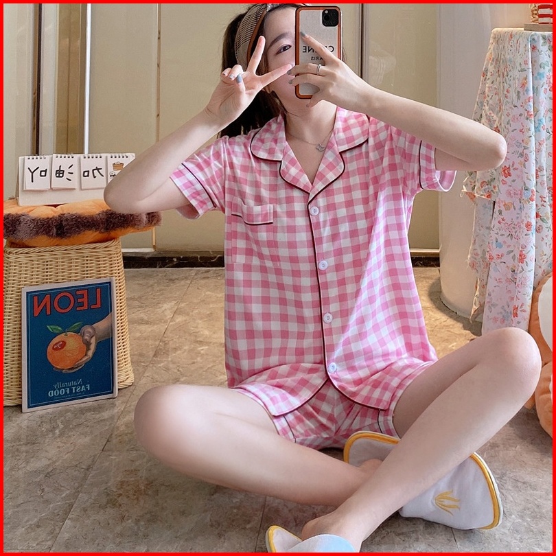 Yooyi Baju Tidur Wanita Set Dewasa Sexy Celana Pendek Piyama Perempuan Model Kemeja Hot Pants Style Korea Sexy Banyak Mo