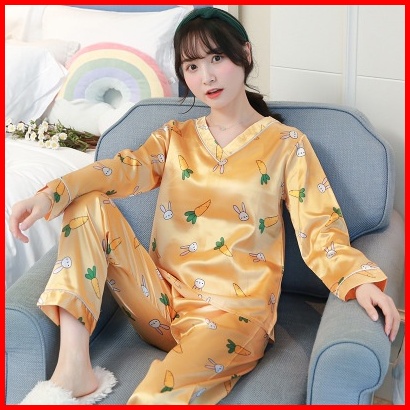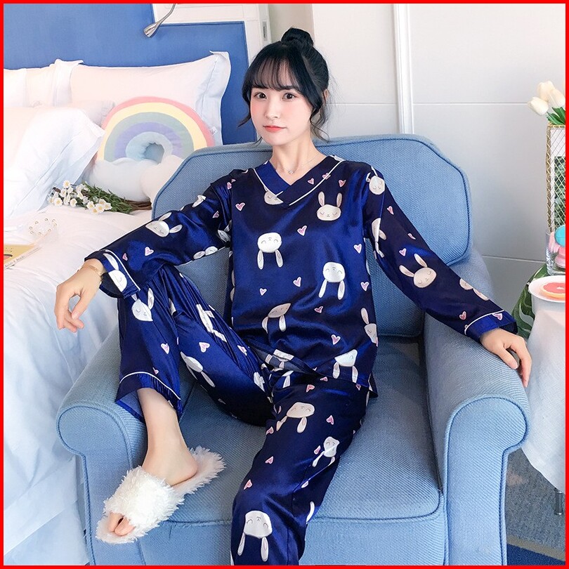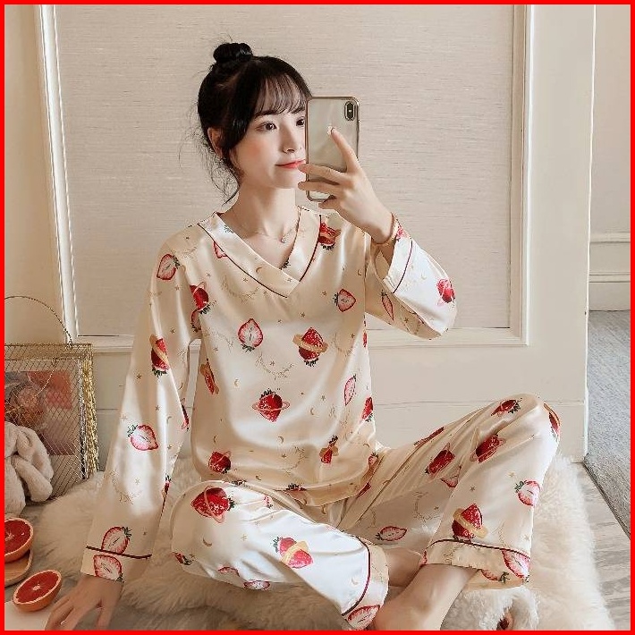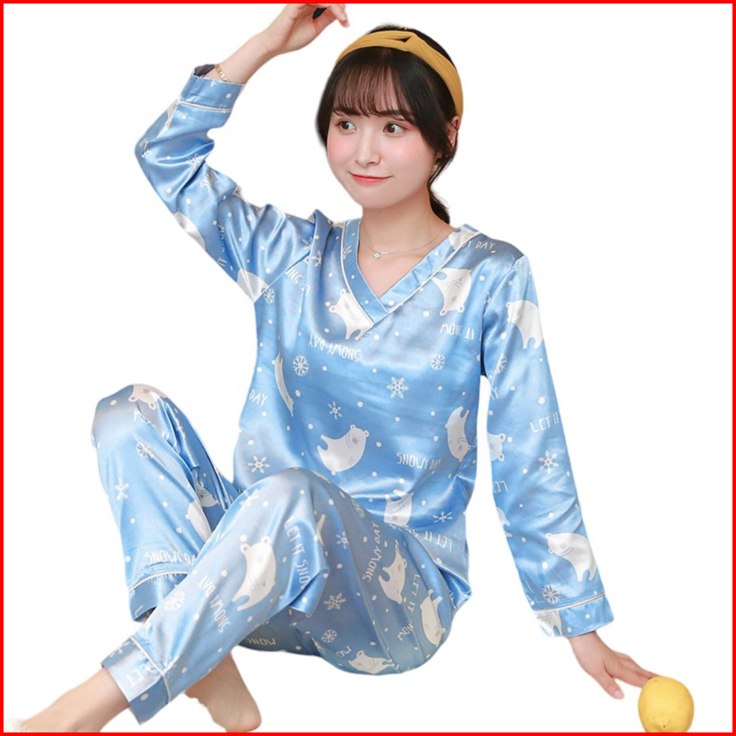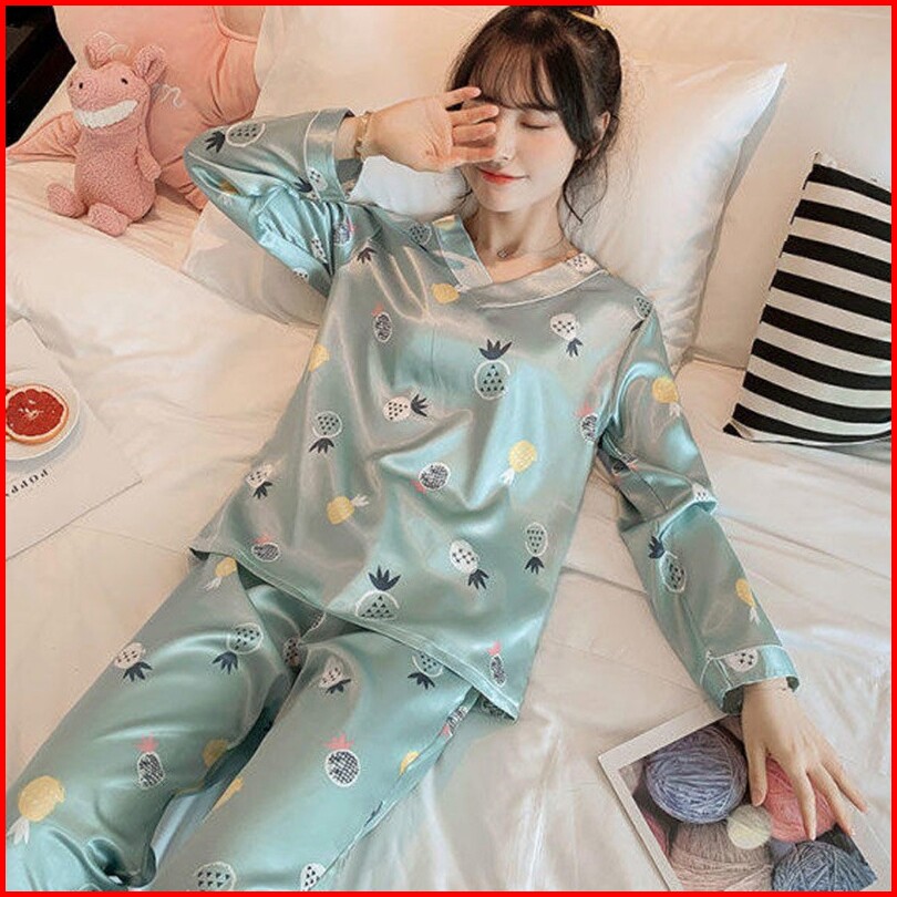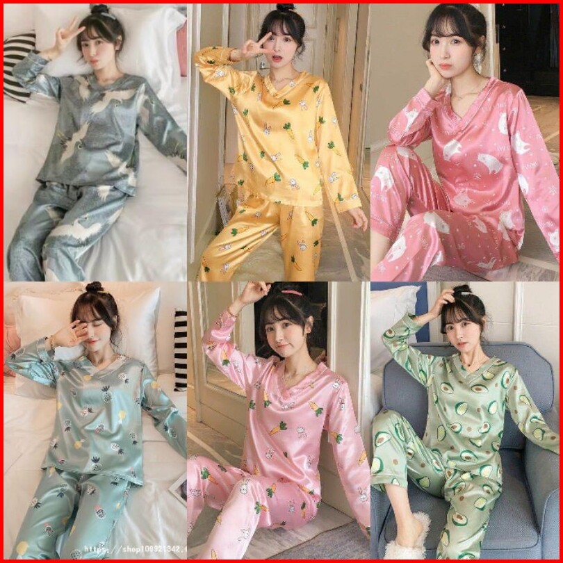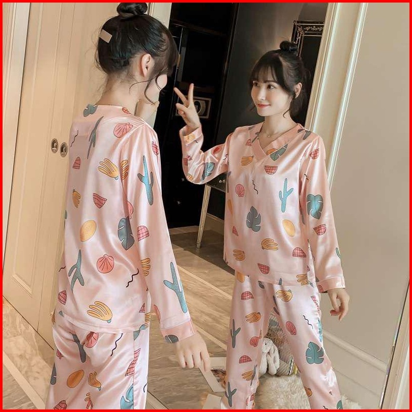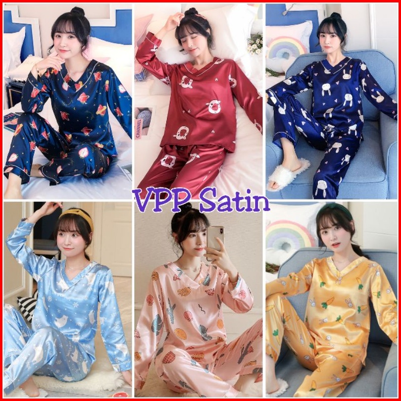 Yesy Fashion Piyama Wanita Satin Lembut - Setelan Tidur Motif Kartun Floral Vpp