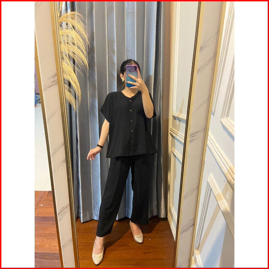 Loly Set Crinkle Aiflow Pajamas Ibu Menyusui - Emracollect.id