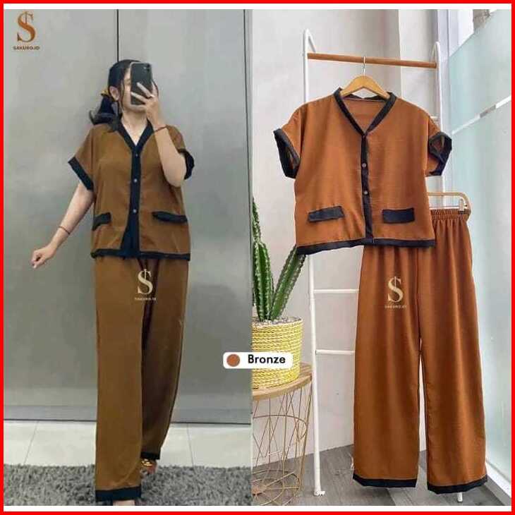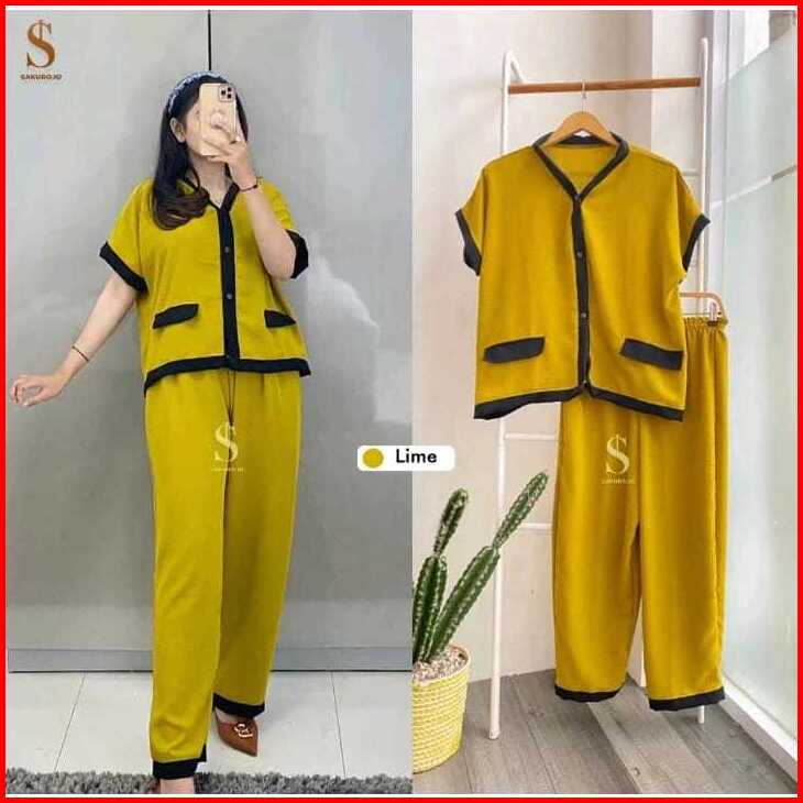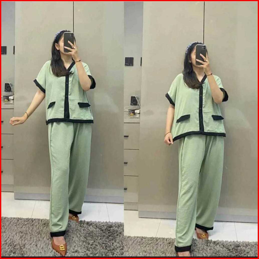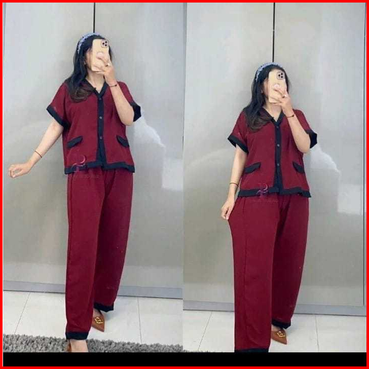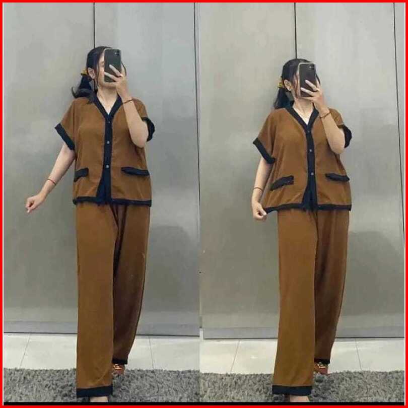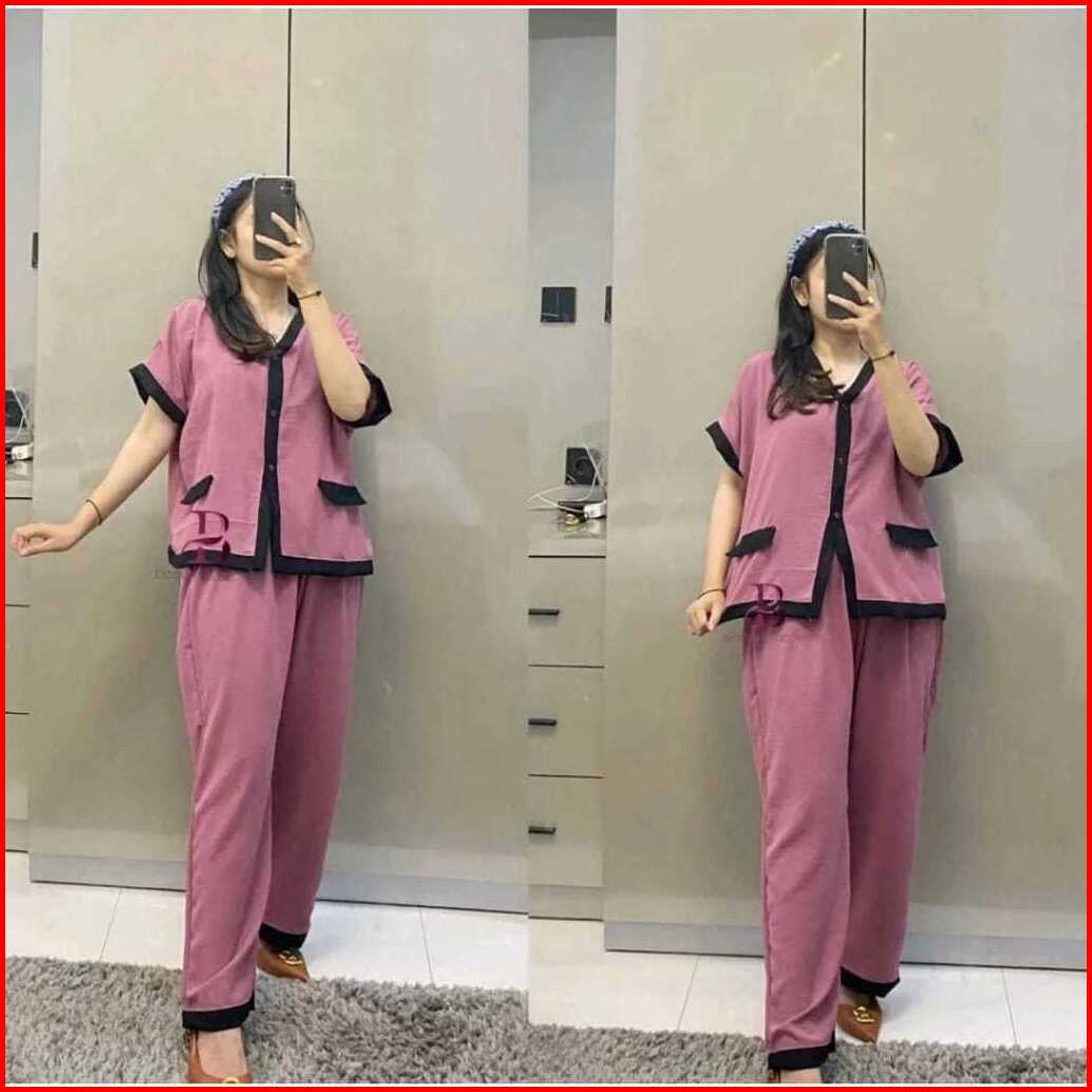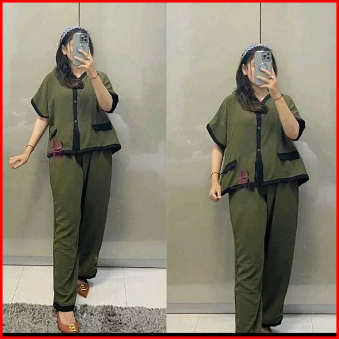 Setelan Lozy Jumbo Xl Xxl Xxxl Ld 110 120 130cm Oneset Crinkle Airflow Full Kancing Premium Outfit Wanita Trend Kekinian