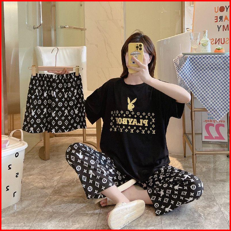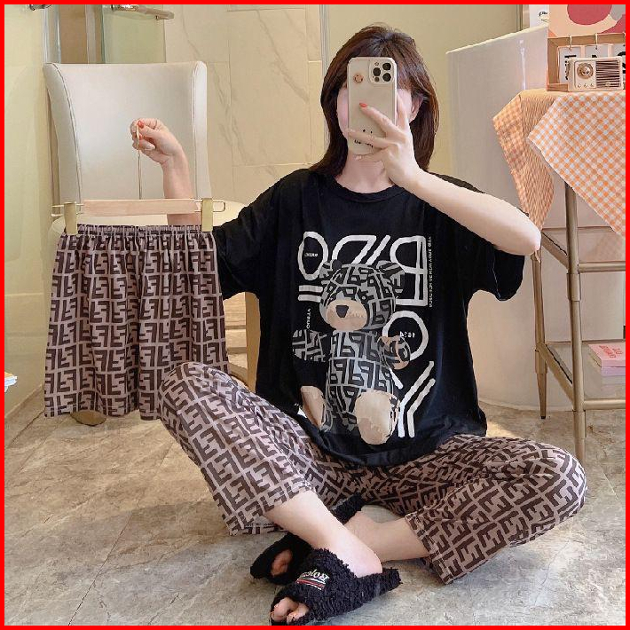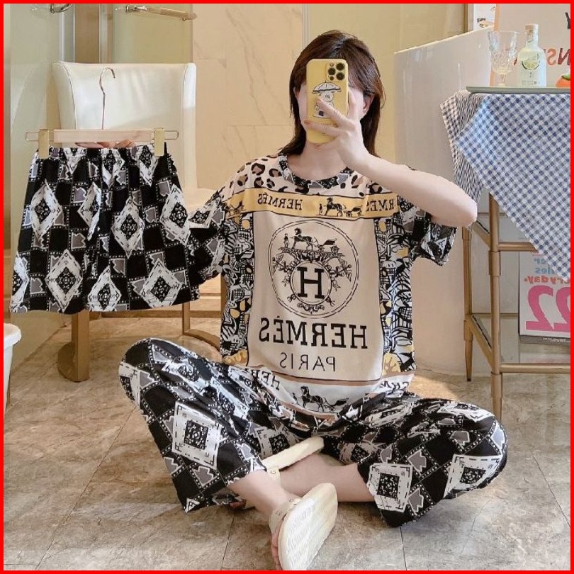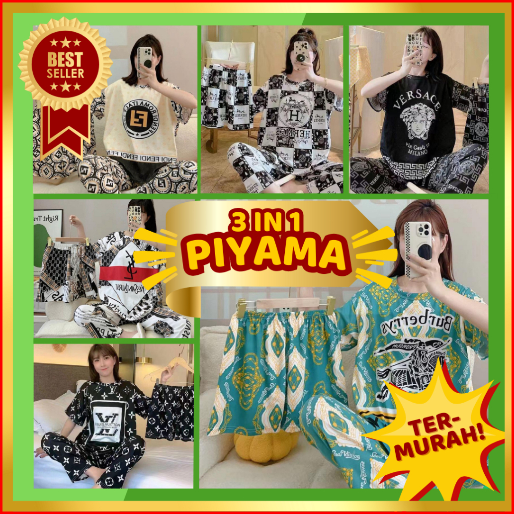 Bos552 A Piyama 3 In 1 Piyama Lengan Pendek Baju Tidur Impor Baju Tidur 3in1 Dapat Celana Panjang Dan Pendek
