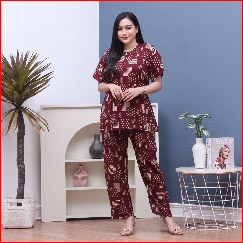 Setelan Cp Baju Tidur Wanita Dewasa Santai Kekinian Busui Kancing Depan Rayon Adem Termurah - Batik Royazs