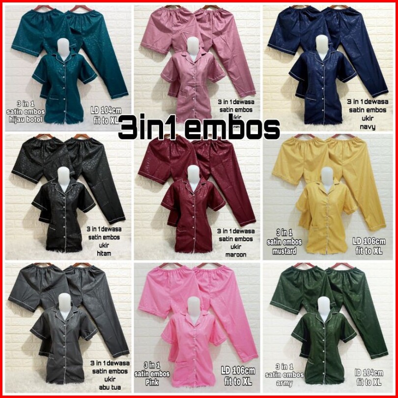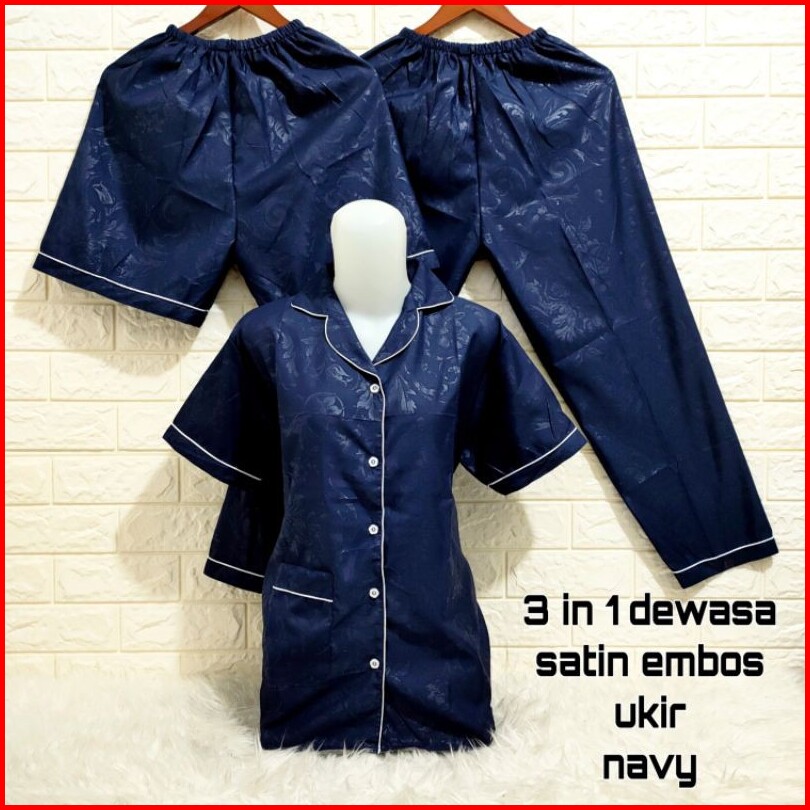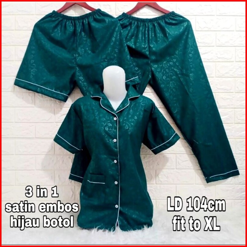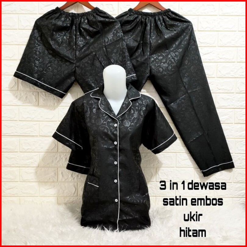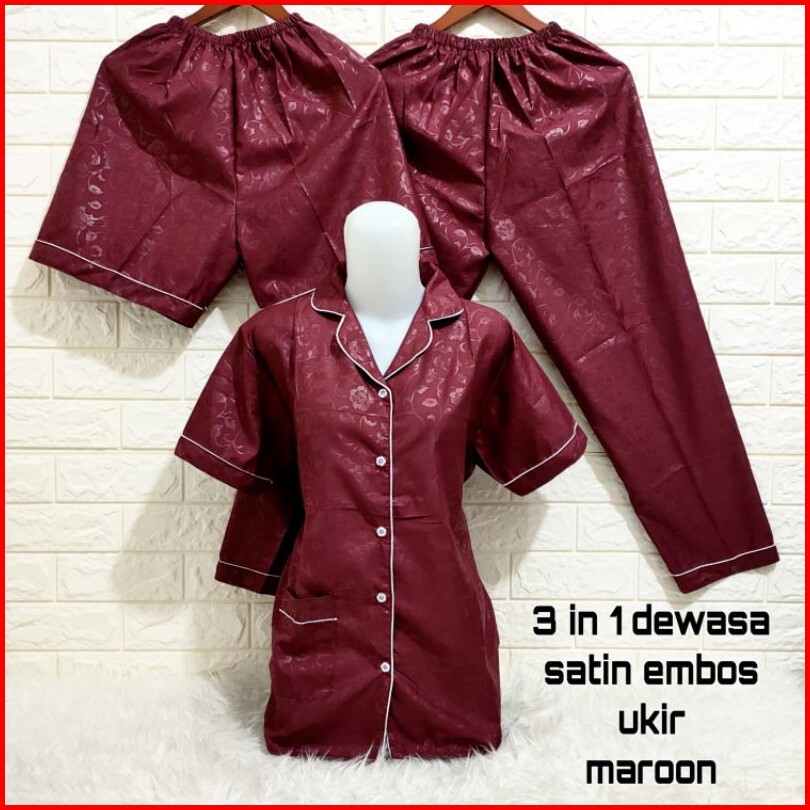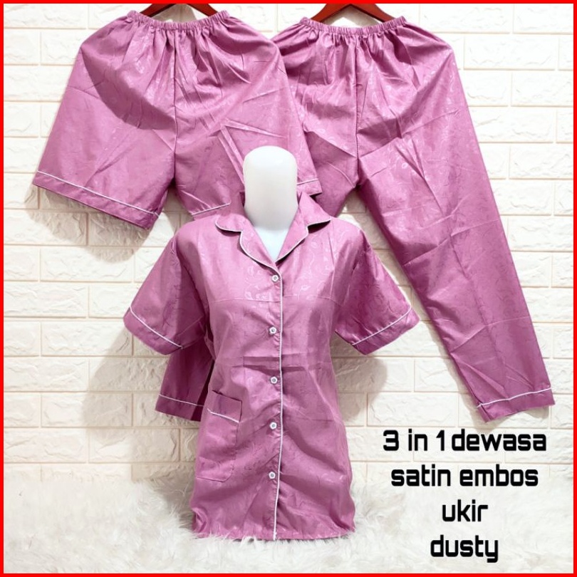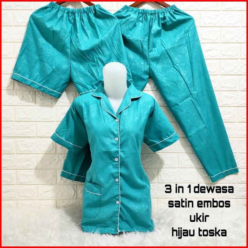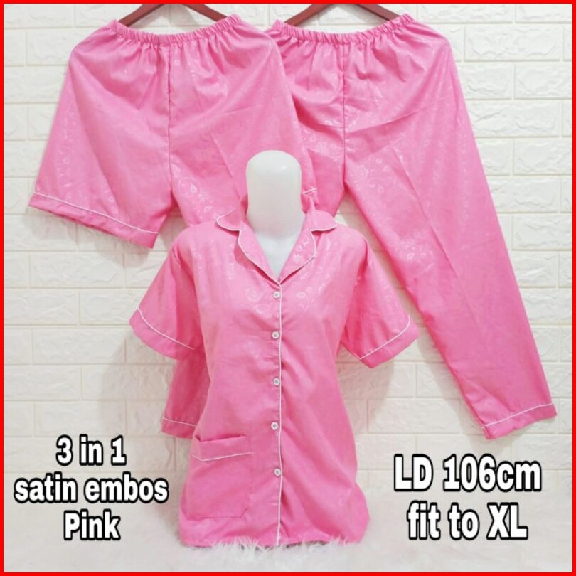 Piyama Baju Tidur Cp 3 In 1 Satin Embos