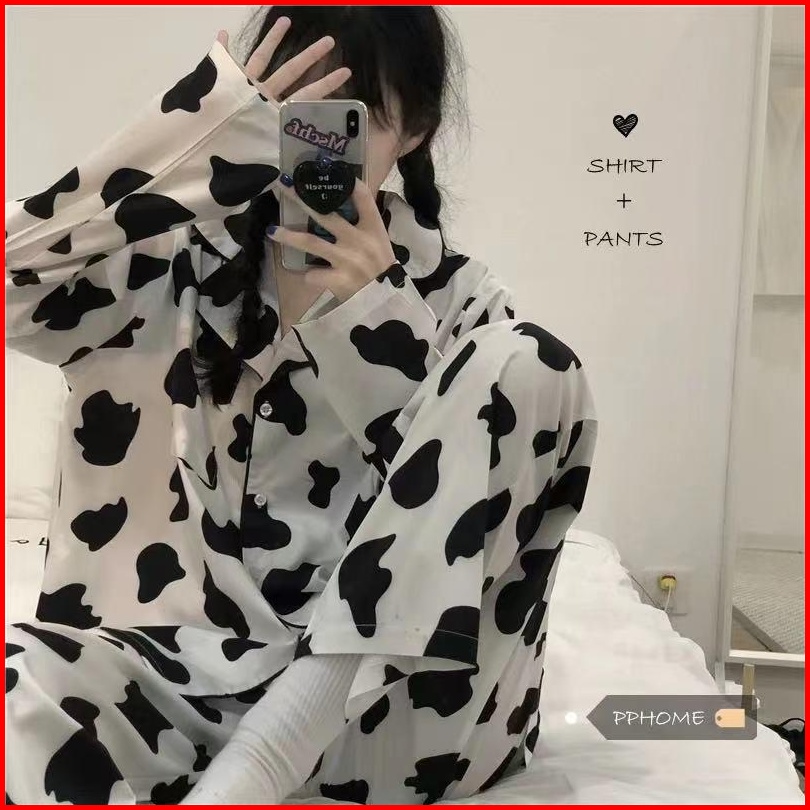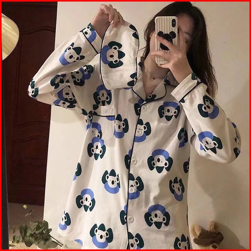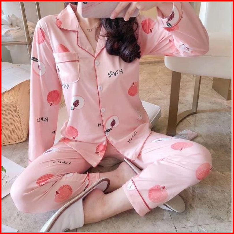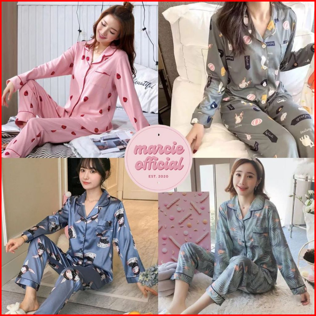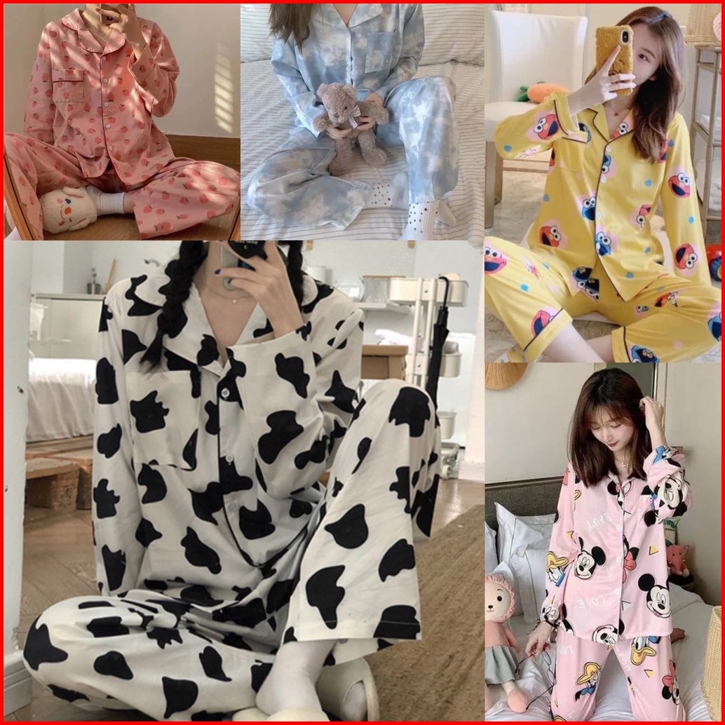 Piyama Wanita Dewasa Pakaian Tidur Import Bahan Katun Kemeja Lengan Celana Panjang Baju Tidur Import
