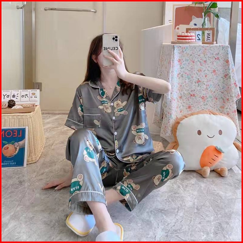 Stelan Piyama Satin Cp Kacing Bahan Silk Satin Import Scp