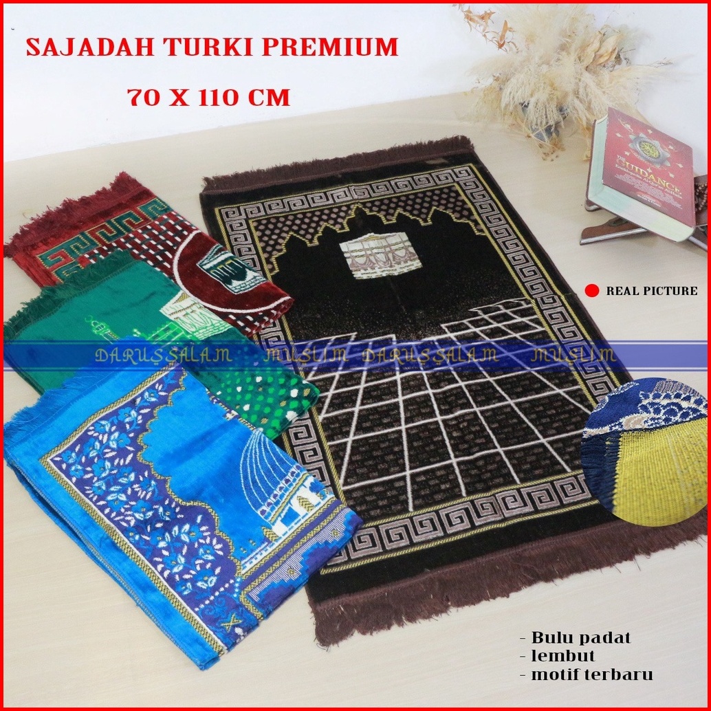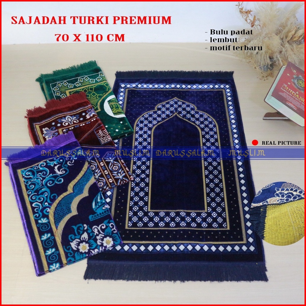 Sajadah Turkey Turki Ukuran Dewasa 70x110 Cm Bahan Beludru Peralatan Sholat