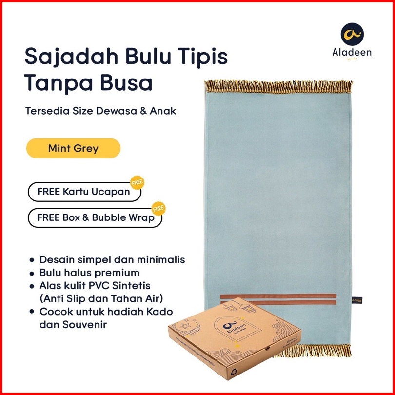 Sajadah Aladeen Bulu Tipis Tanpa Busa - Abu Size Dewasa Free Kartu Ucapan