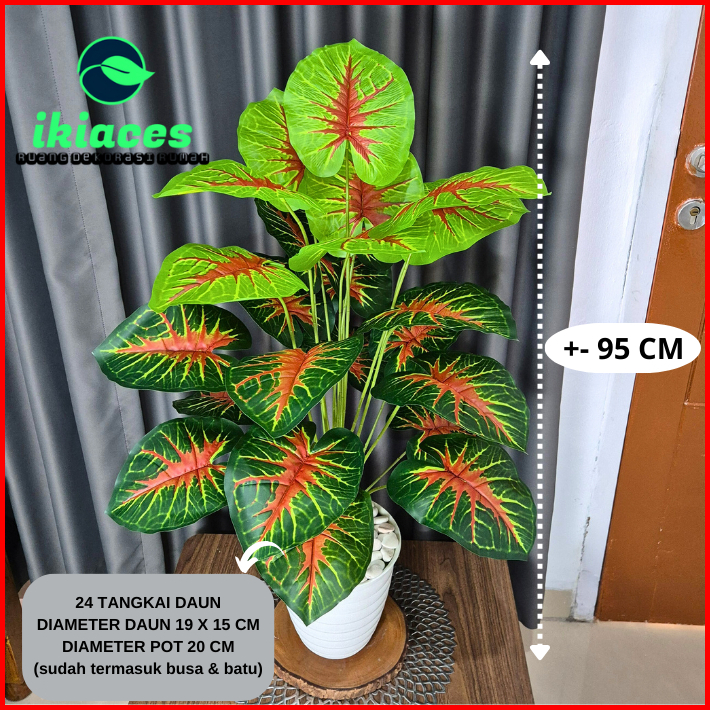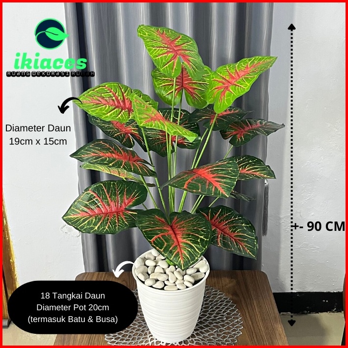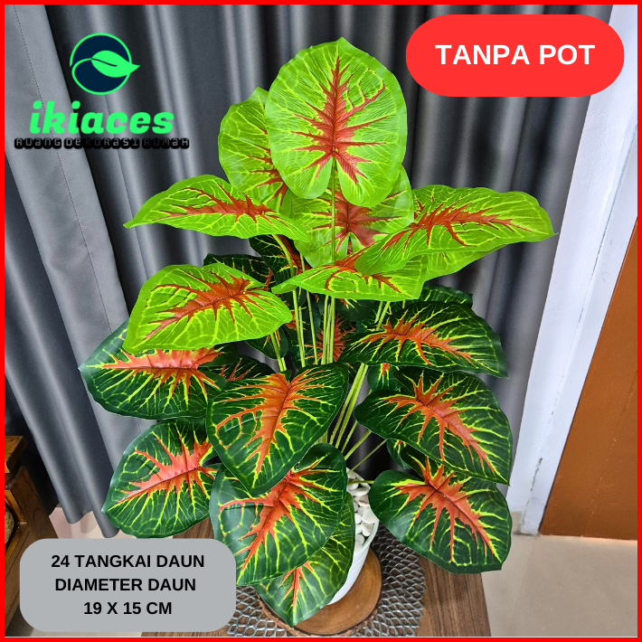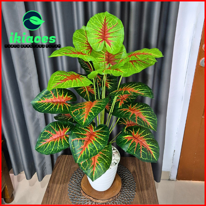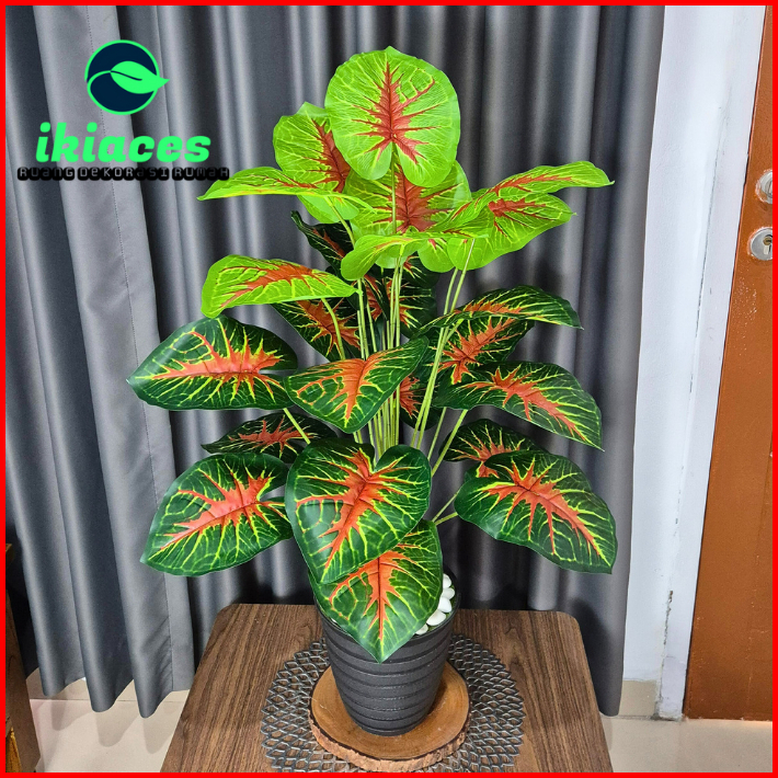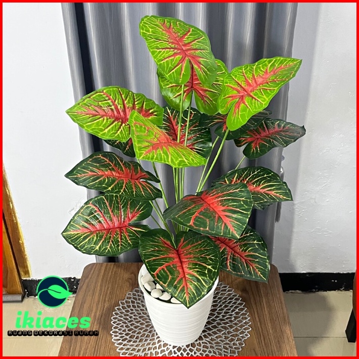Daun Keladi Hias Daun Aglonema Plastik Pot Bunga Artifisial Jumbo Pohon Hias Palsu Dekorasi Rumah Murah