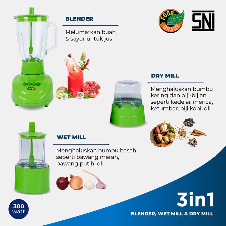 MIYAKO BLENDER KACA GELAS PLASTIK 3 IN 1 BLENDER SET BUMBU BL-152 GF KAPASITAS 1.5 LITER ORIGINAL MIYAKO BUKAN PHILIPS
