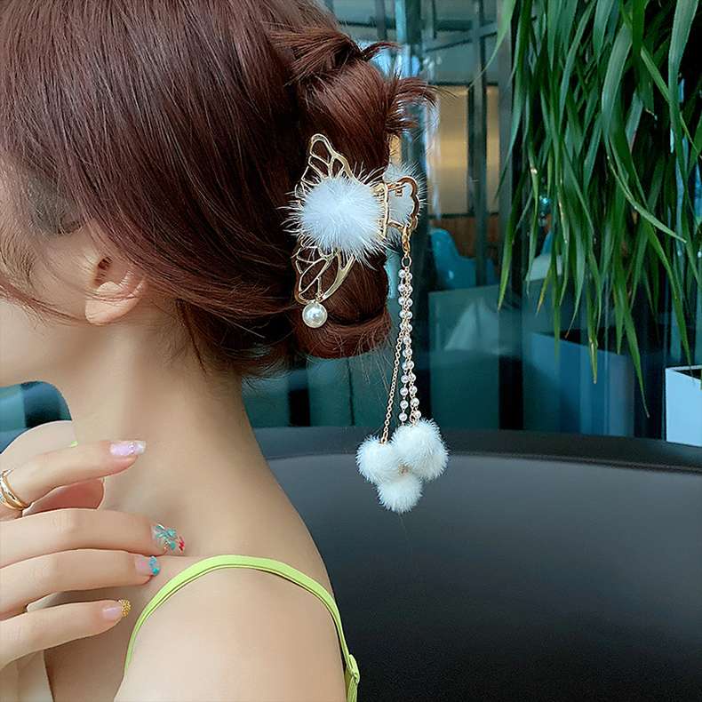 (HELLO GIRL)F107 JEPIT RAMBUT WANITA MOTIF KUPU JEDAI BULU POM POM GAYA KOREA IMPORT