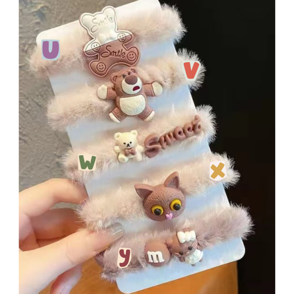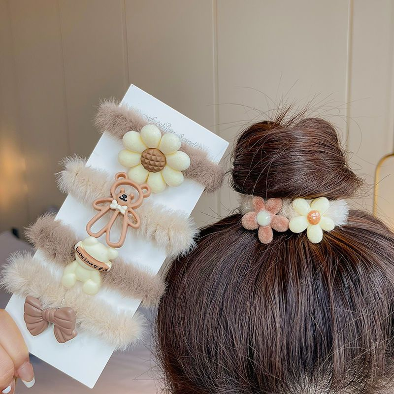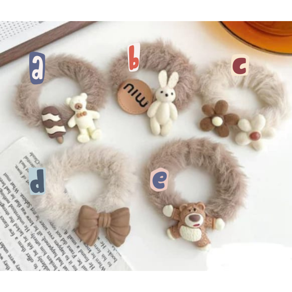 ACC120 SCRUNCHIE BULU LUCU /IKAT RAMBUT BULU MODEL BUNGA LOVE BERUANG IMPORT