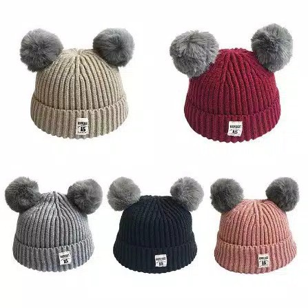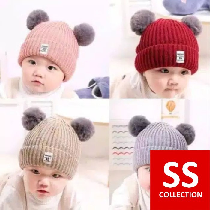 SS COLLECTION - KP102 TOPI RAJUT POMPOM BULU ANAK / TOPI KUPLUK WOOL RAJUT HANGAT BAYI / ANAK UNISEX