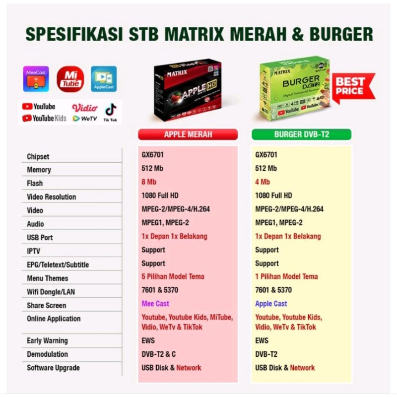MATRIX APPLE MERAH/SILVER/KUNING SUPER HD - STB TV DIGITAL YOUTUBE,MEECAST,APPLE CAST,IPTV