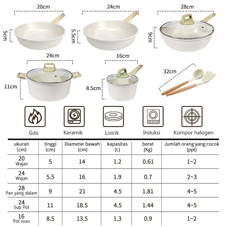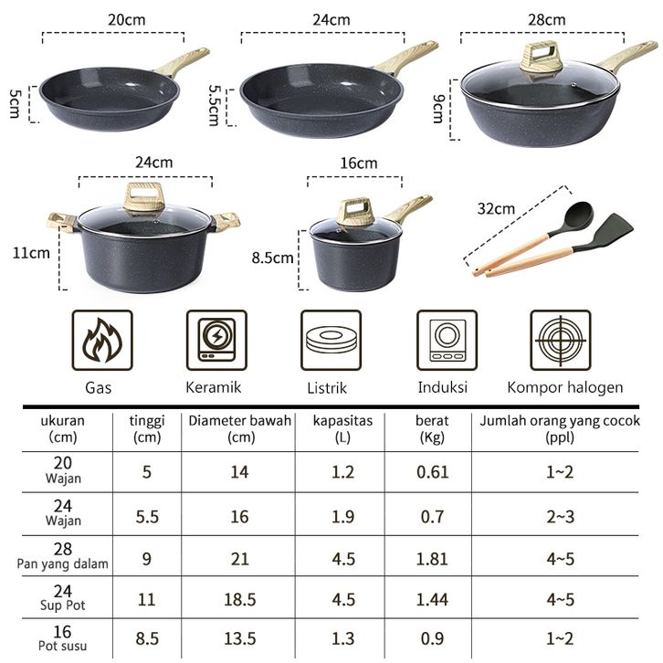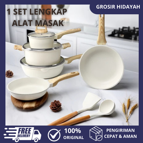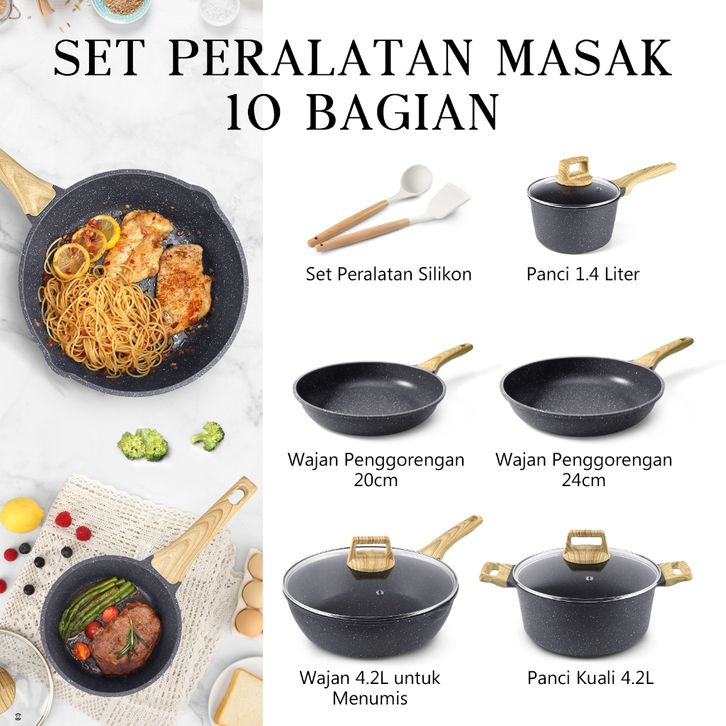 Set Panci Anti Lengket Granit 10pcs Wajan 26 20 16 Cm Alat Masak Penggoreng Serbagunan Lengkap Multifungsi Termurah Baru