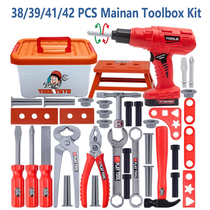 38/39/41/42 PCS MAINAN TOOLBOX KIT INSINYUR SIMULASI ALAT PERBAIKAN MAINAN BERPURA-PURA BOR LISTRIK KIT