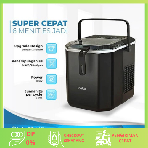Iceler Mesin Es Portable Ice Maker 12 Kg per Hari dengan 2 Handle es batu