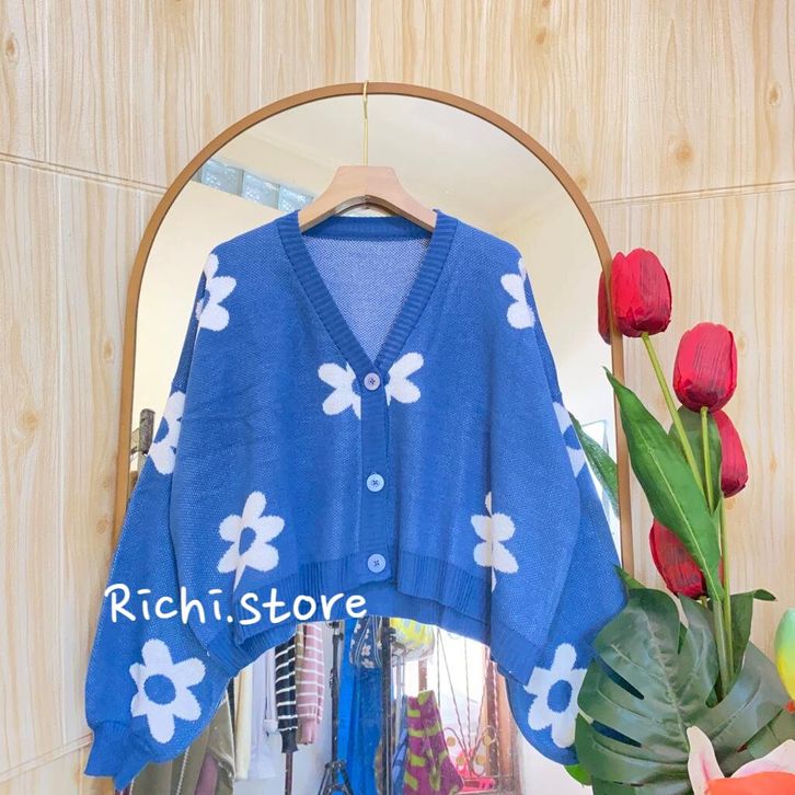 CARDIGAN RAJUT WANITA KEKINIAN FASHIONABLE MOTIF BUNGA KOREA STYLE CROP CARDIGAN OVERSIZE RAJUT CEWEK BEST SELLER