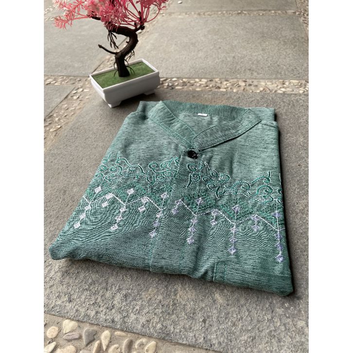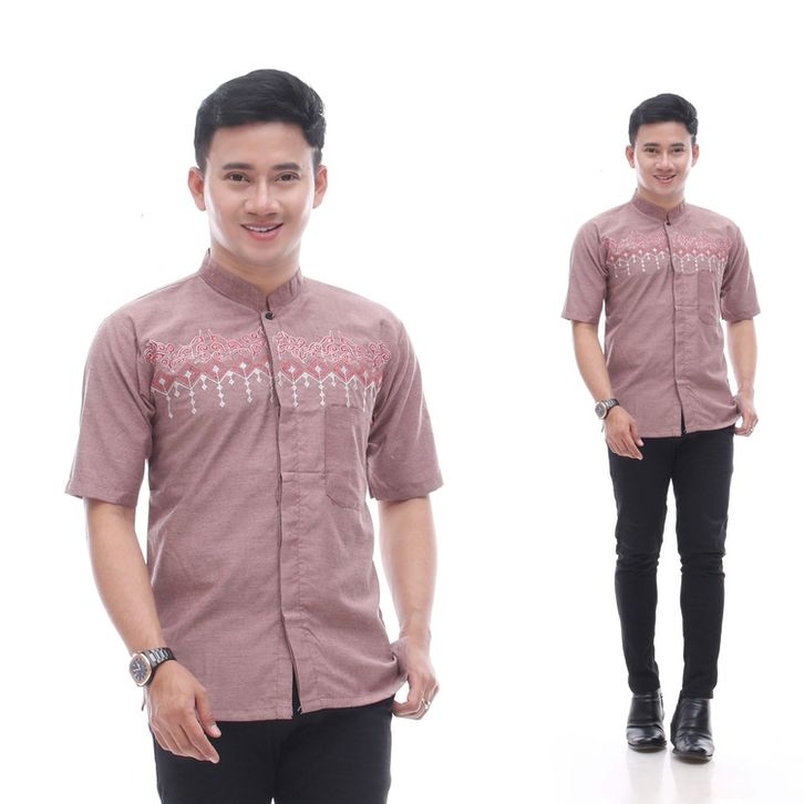 BAJU KOKO BORDIR LENGAN PENDEK TERMURAH BUSANA MUSLIM PRIA ALKHALIS