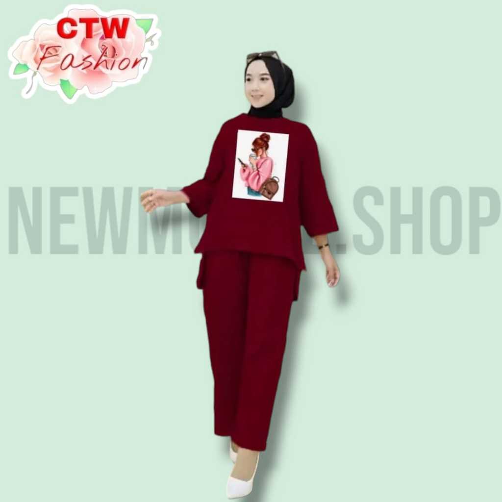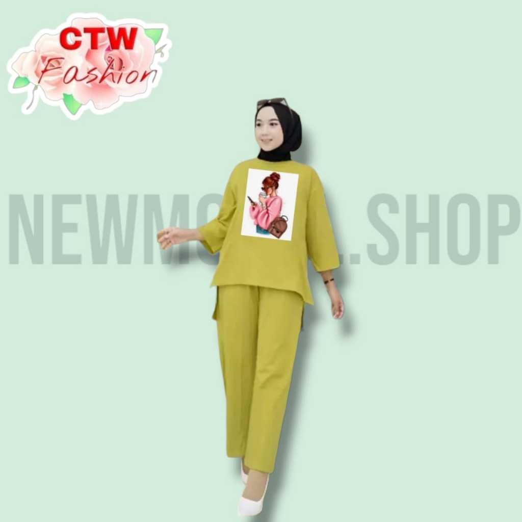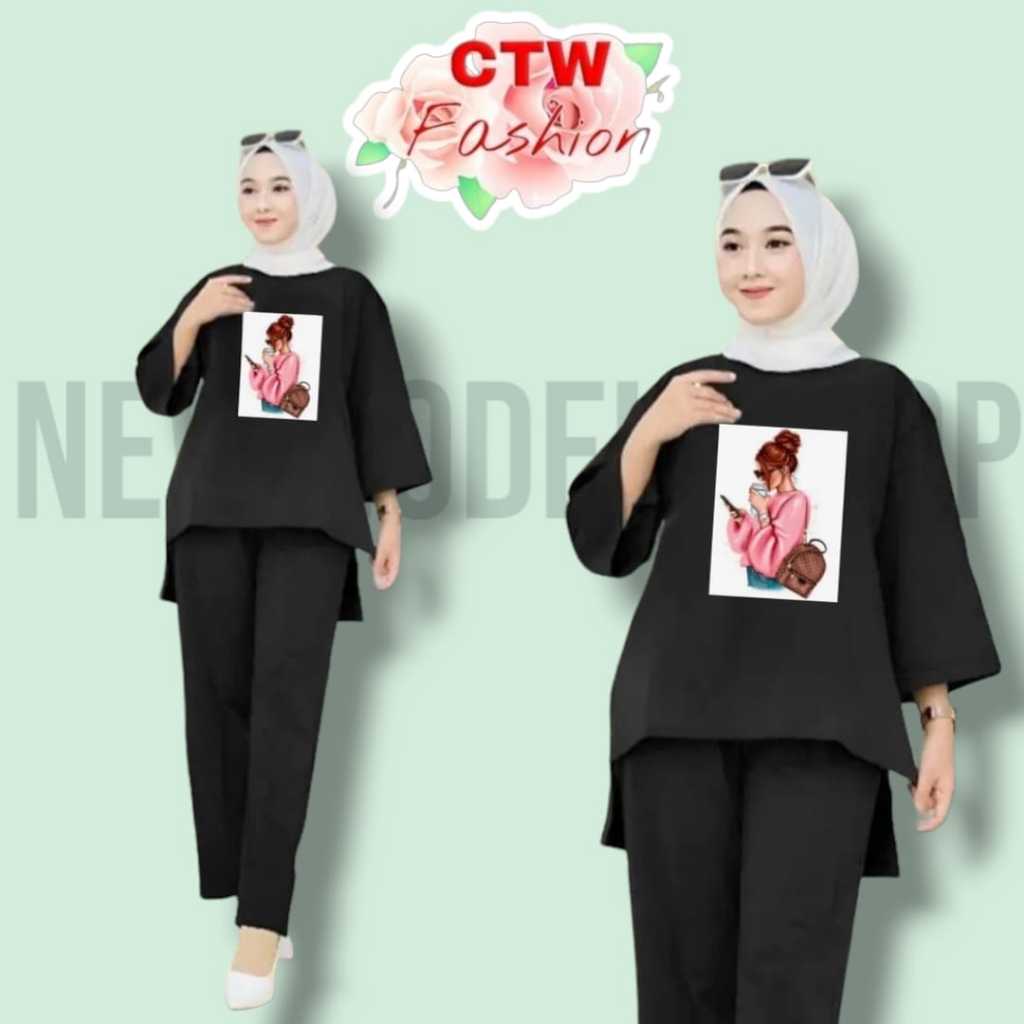 ONE SET WANITA KEKINIAN SETELAN BAJU DEWASA VIRAL BAJU SANTAI PEGANG HP