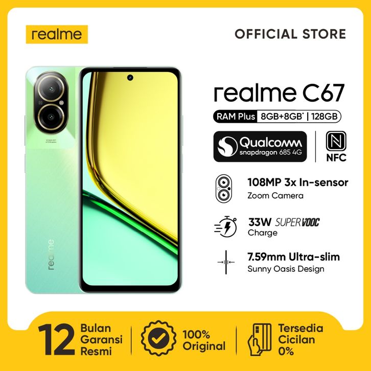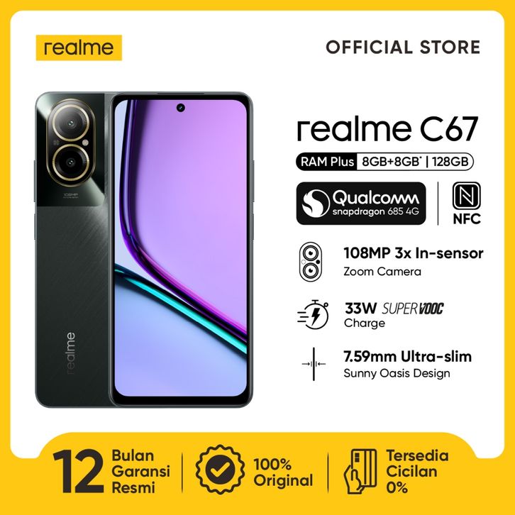 CREDIT TANPA DP realme C67 8GB+8GB*|128GB (108MP Camera | Snapdragon 685 | 7.59mm Ultra Slim | 33W SUPERVOOC | 5000mAh