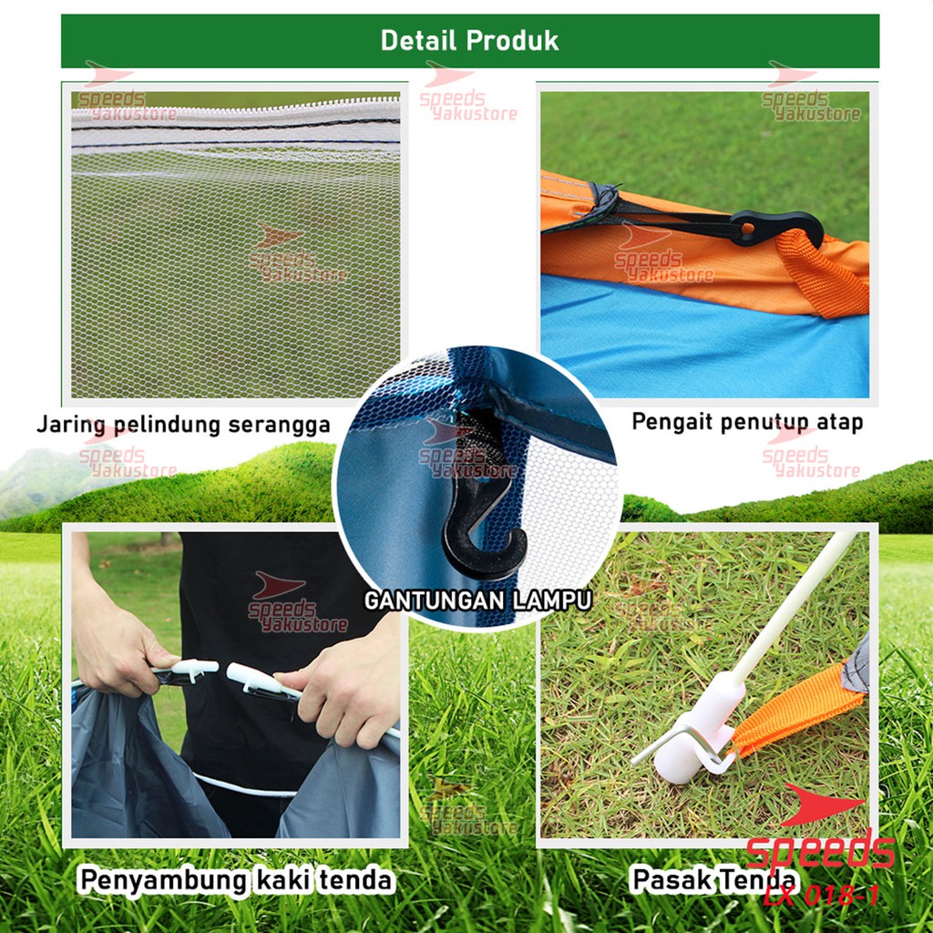 SPEEDS TENDA CAMPING BIRU KAPASITAS 1-3 ORANG TENDA OTOMATIS OUTDOOR & INDOOR TENDA