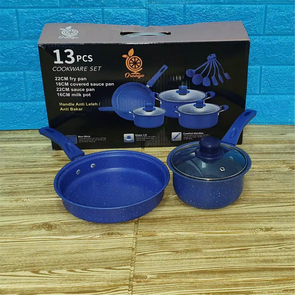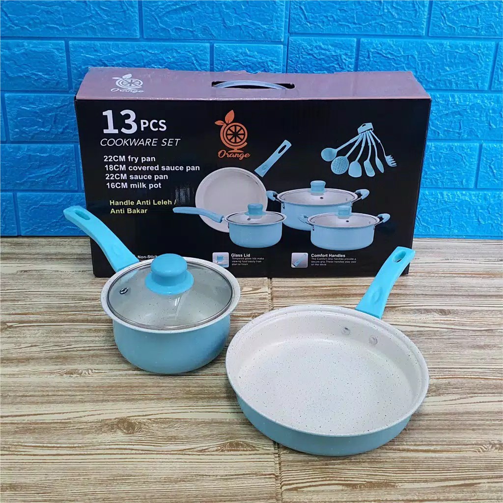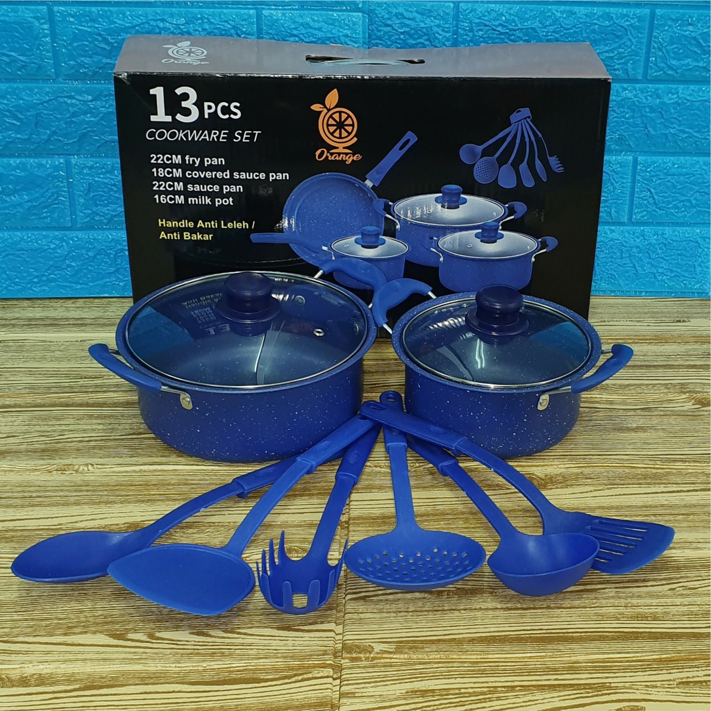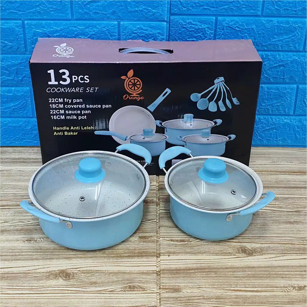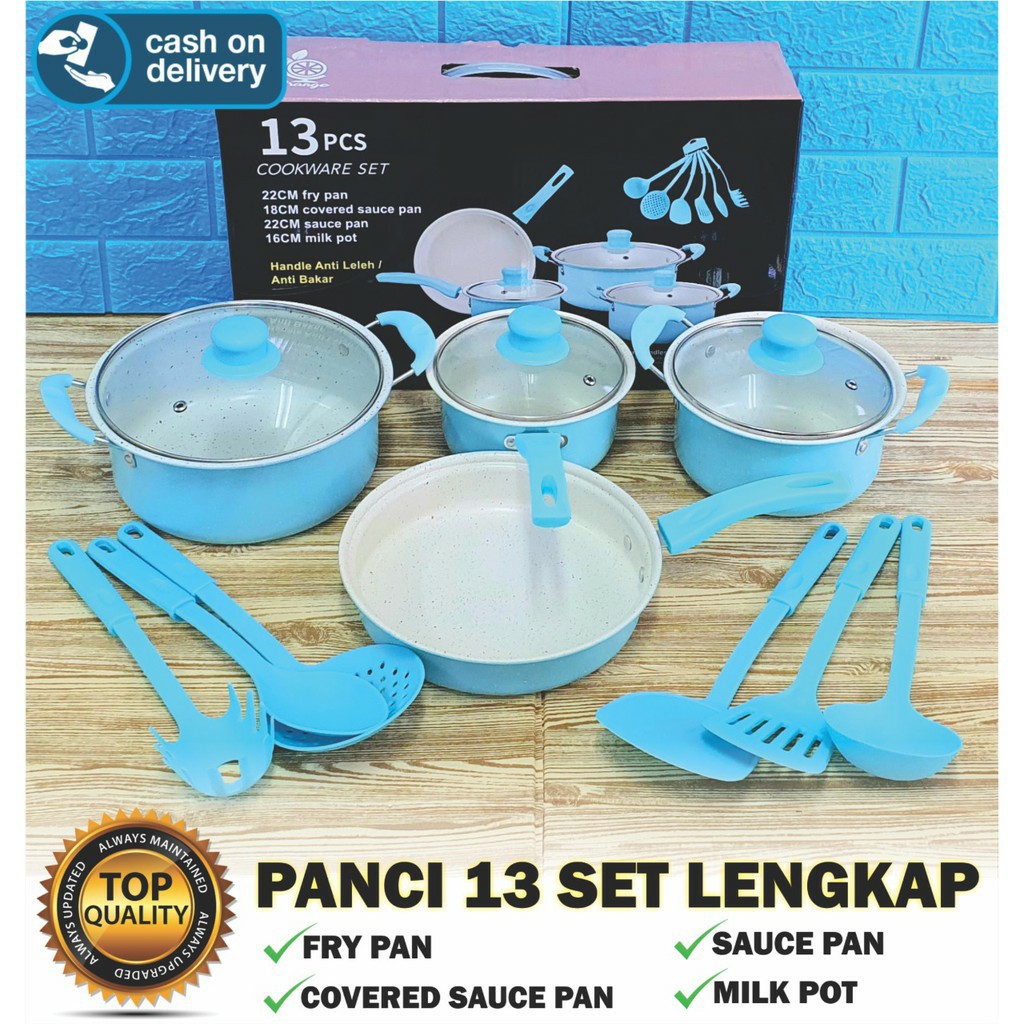 PAKET COOKWARE PANCI 13 SET IN 1 PAKET PERALATAN MASAK PANCI ENAMEL SET SPATULA DAN PANCI