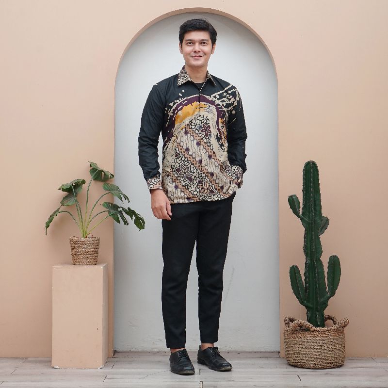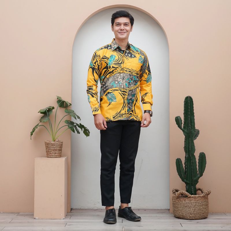 KEMEJA BATIK PRIA LENGAN PANJANG SIZE M L XL XXL BSWART BATIK HRB026 KENONGO HEM PANJANG PADI