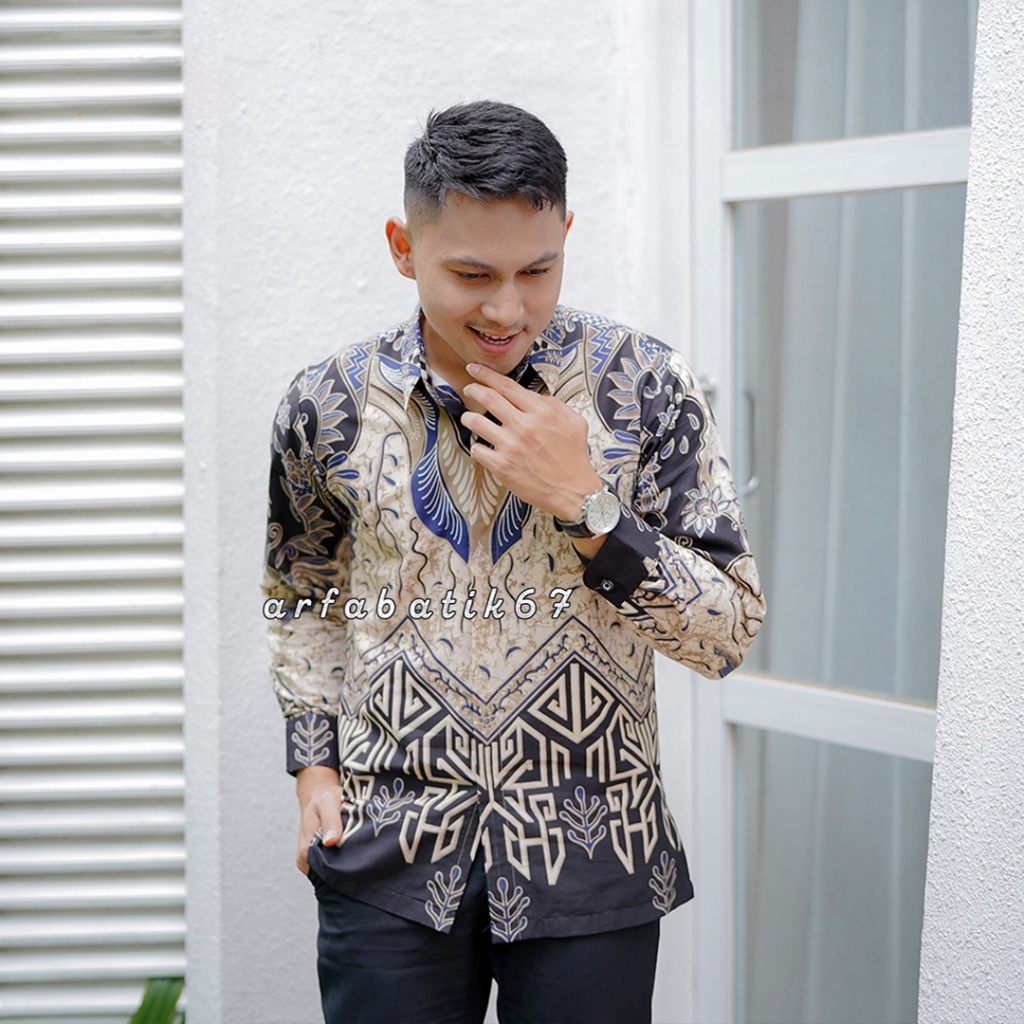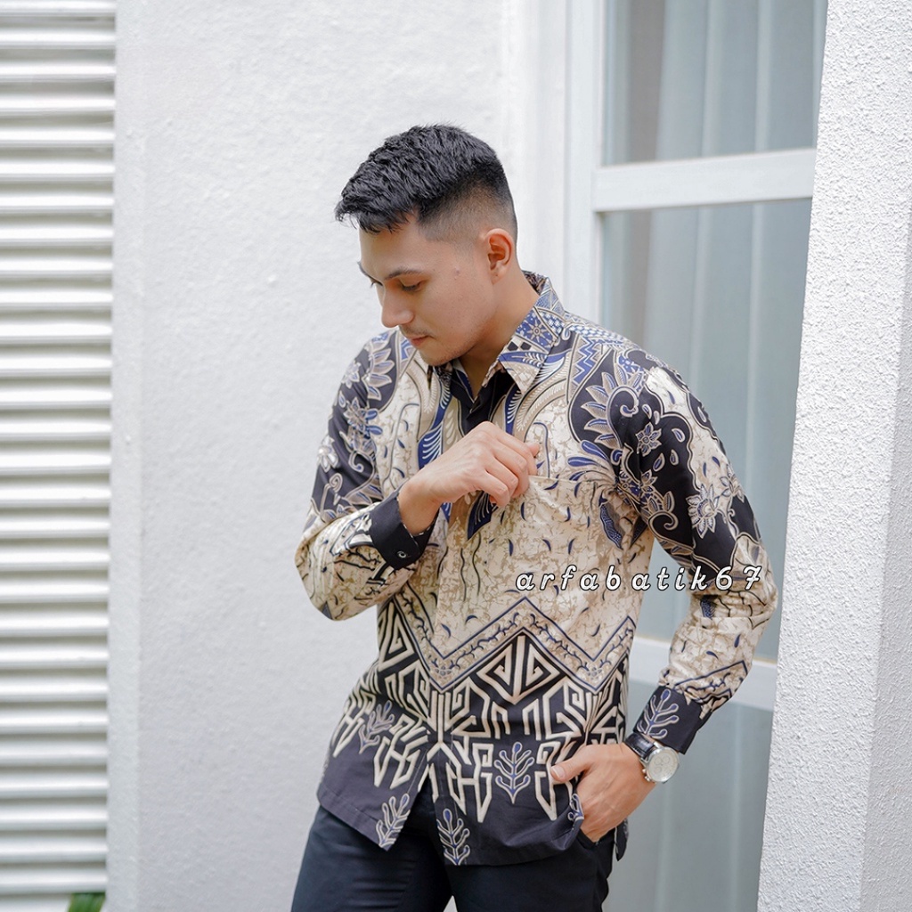 SUKMO LIST NAVY KEMEJA BATIK PRIA LENGAN PANJANG KATUN SOLO LAPIS FURING BY ARFABATIK67