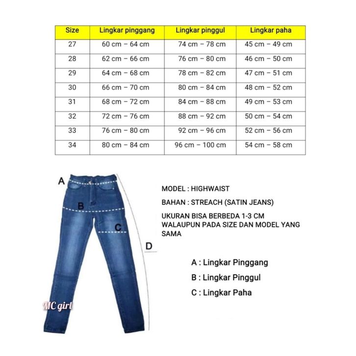 High Waist Jumbo / Celana Jeans Pinggang Tinggi Kaki Pensil