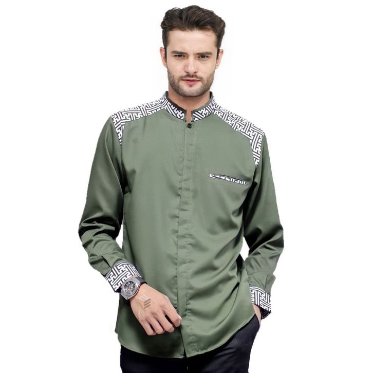 TERMURAH Baju Koko Pria Dewasa Lengan Panjang Warna Hijau Army Terbaru Series - Baju Muslim - Koko Lengan Panjang