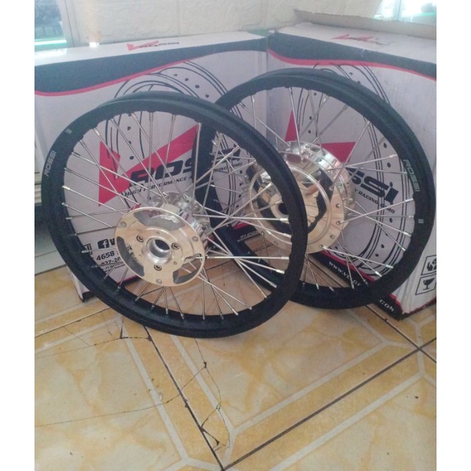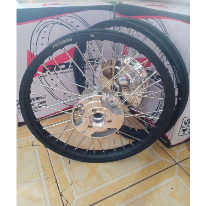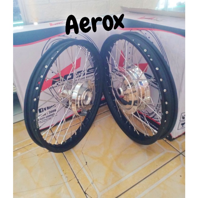 [Star] Velg Jari Jari Ring 17 140-160-185 Hitam Chrome Merk Rossi Untuk Motor Aerox Satu Set Depan Belakang