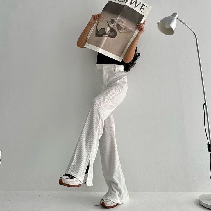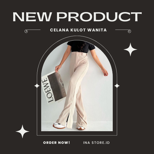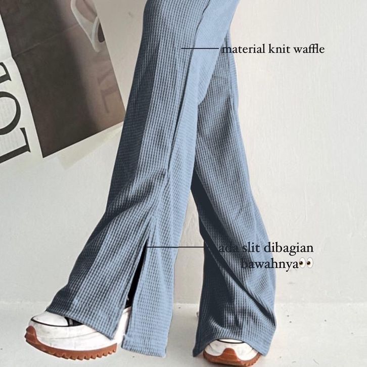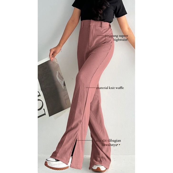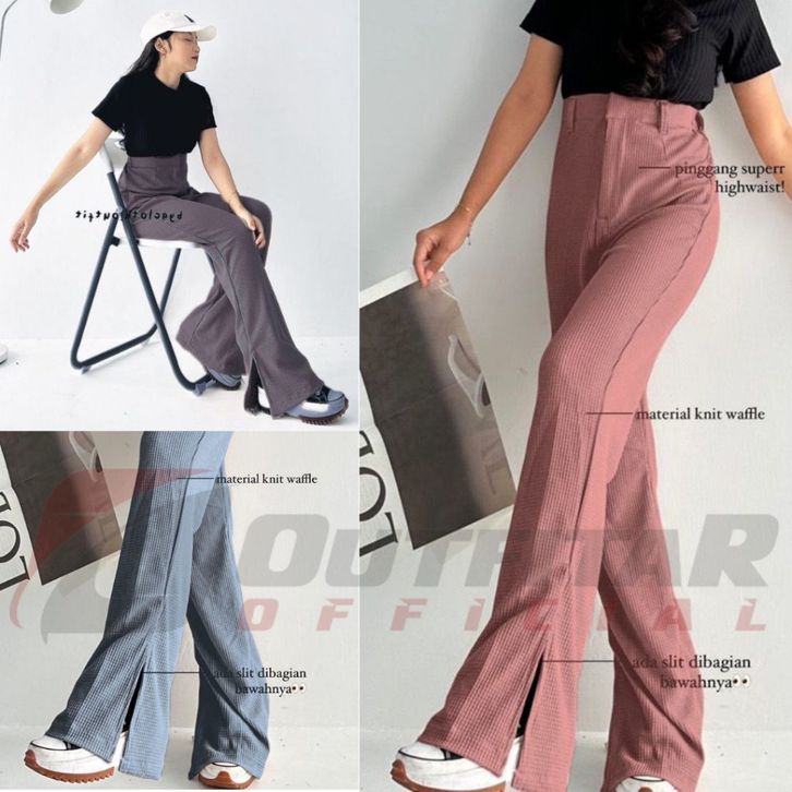 CELANA KULOT WANITA LOOSE PANTS HIGHWAIST KNIT WAFFLE SLIT KEKINIAN KOREAN STYLE BAHAN PREMIUM BEST SELLER