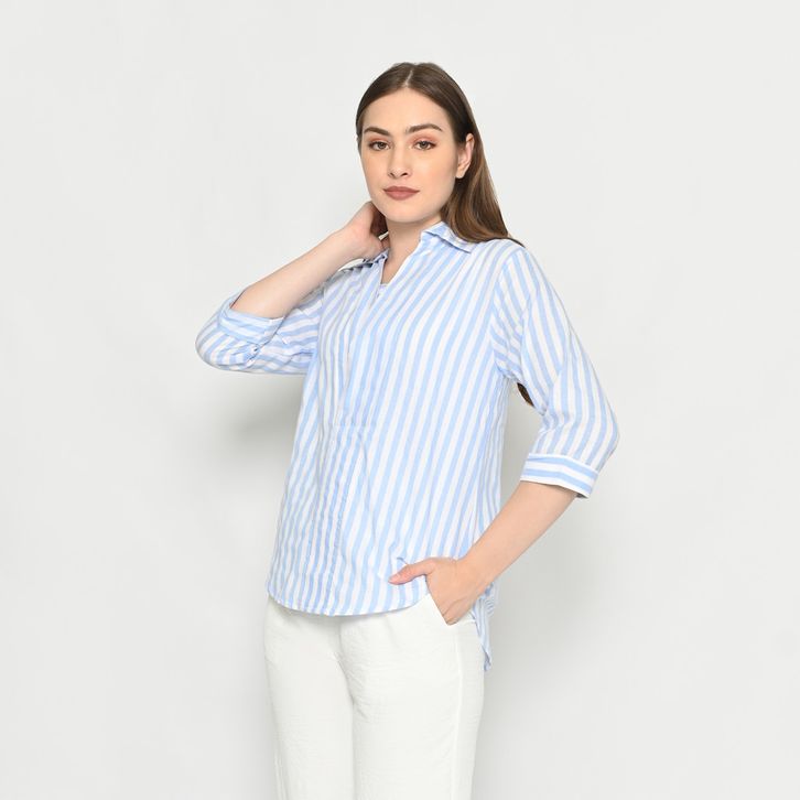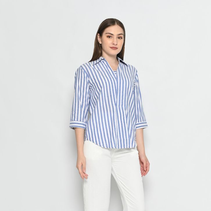 KEMEJA SALUR WANITA QUEENTIN PREMIUM LENGAN PANJANG 3/4 BLOUSE CASUAL KATUN ORIGINAL KEKINIAN TERBARU