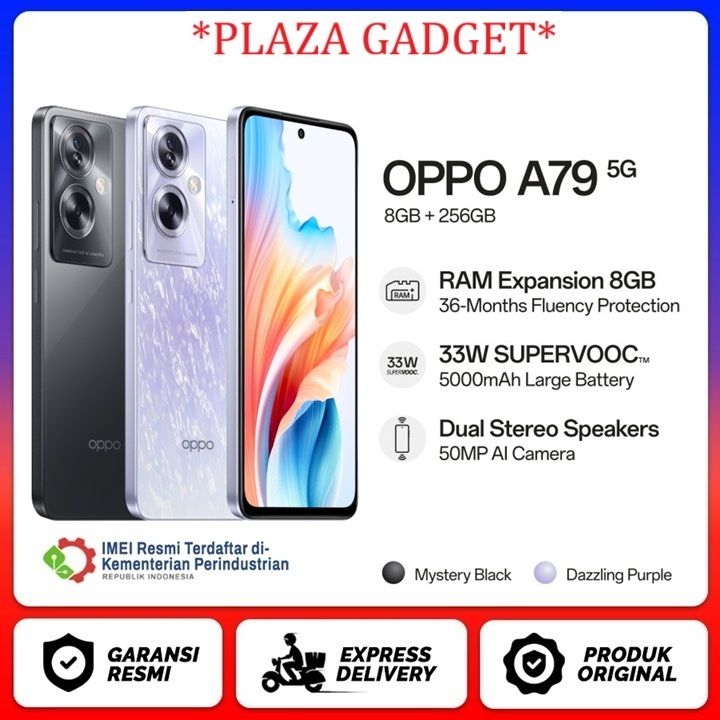 Oppo A79 5G NFC [8GB/256GB] Extended RAM 8GB - Dimensity 6020 - 50MP AI Camera - Stereo Speakers - 33W SuperVOOC