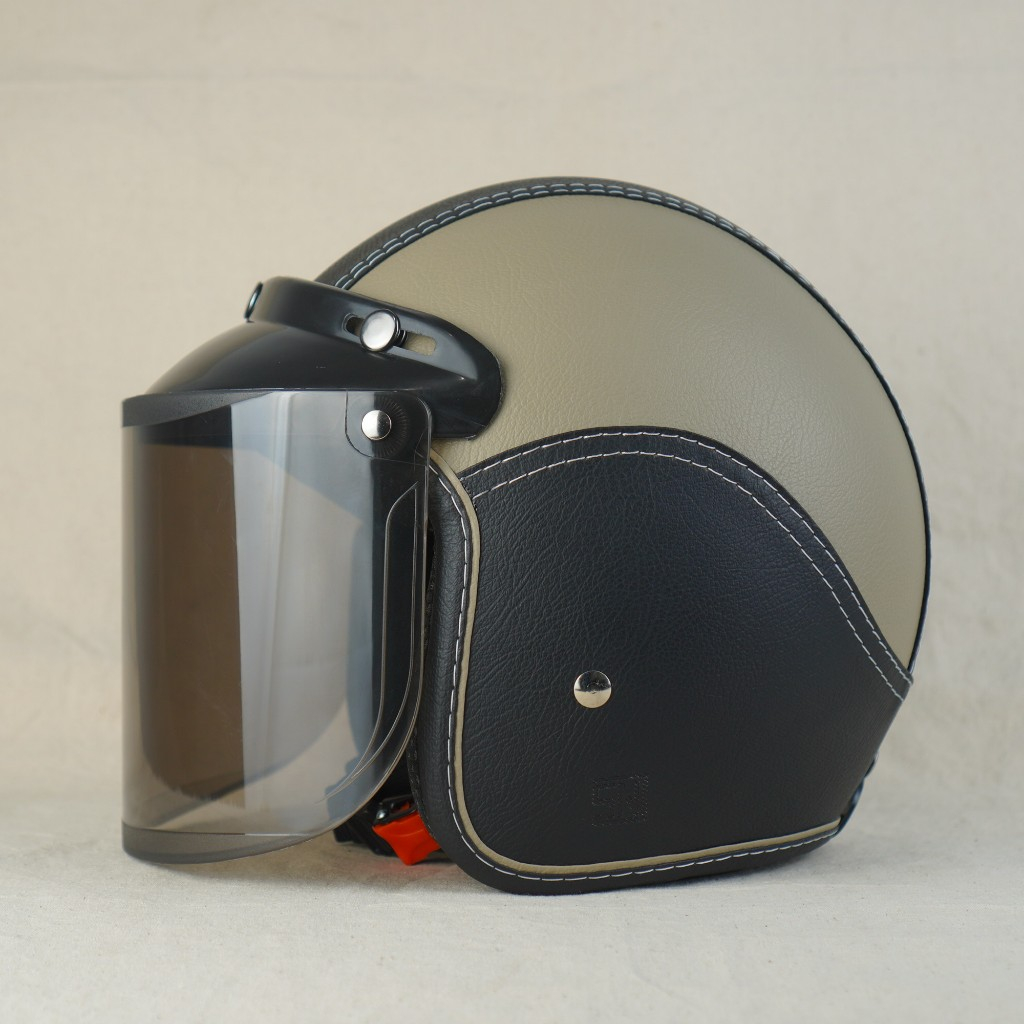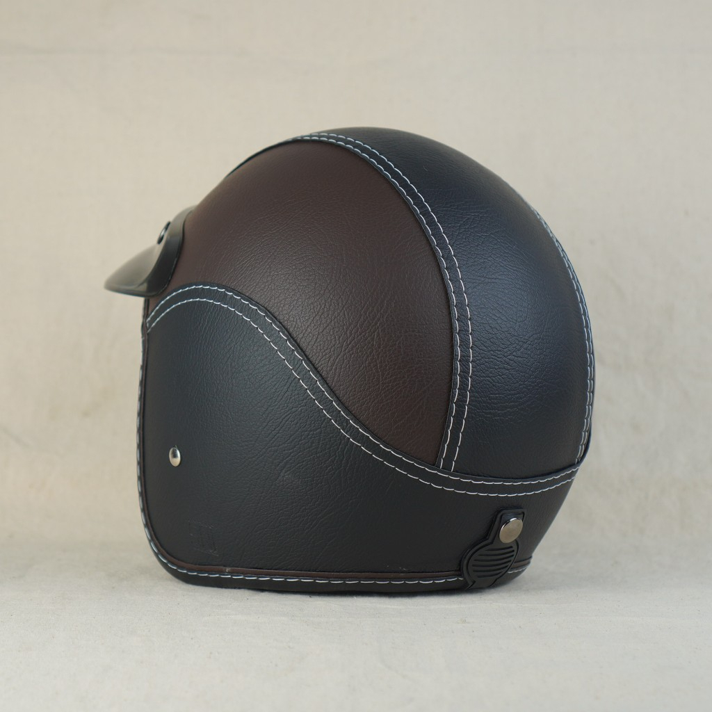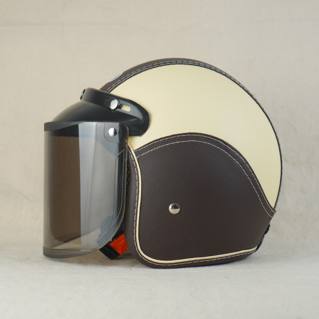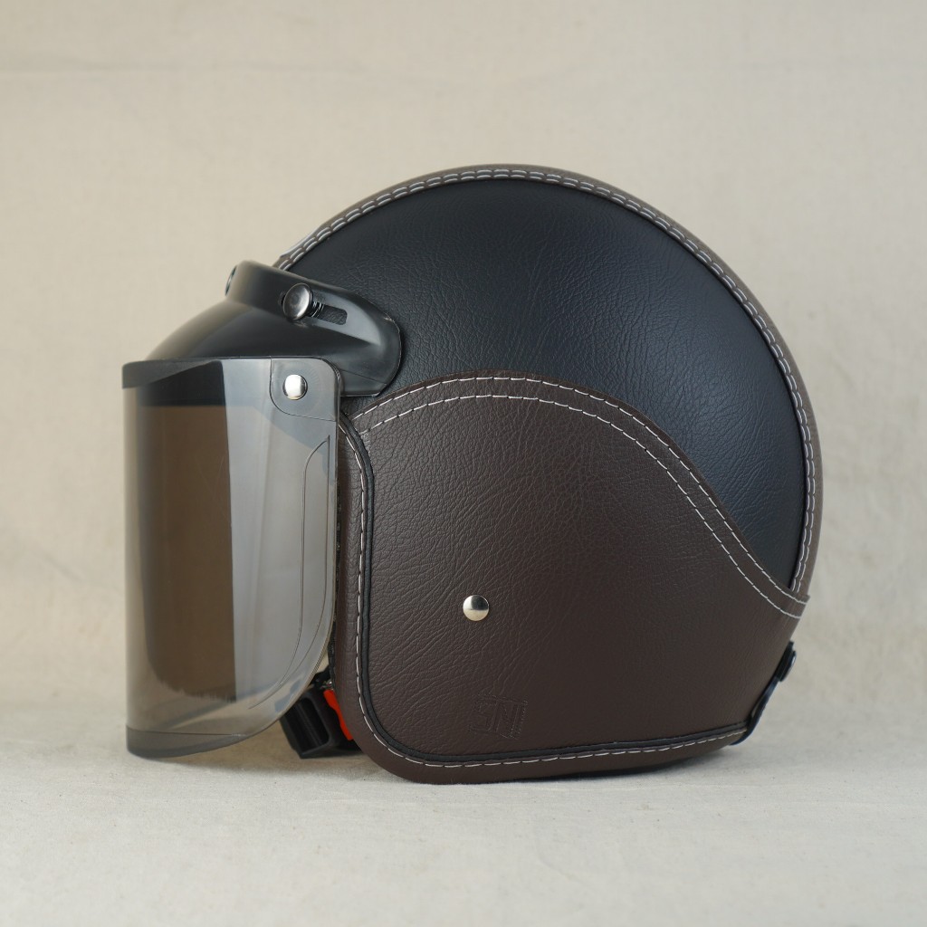HELM BOGO KULIT FULL LEHER RETRO DEWASA SNI KACA CEMBUNG DATAR