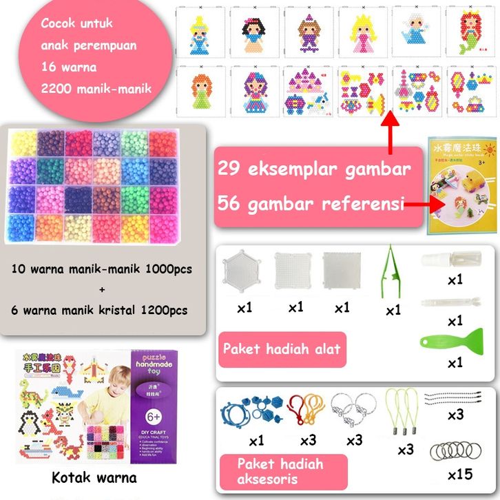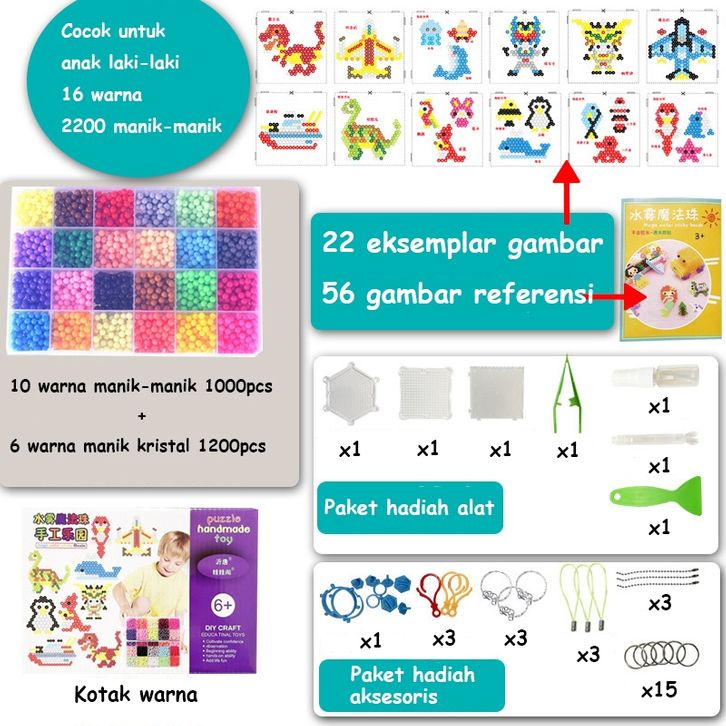 Mainan Manik Air Set 2200pcs / Water Beads DIY Ajaib Karakter / 16 Warna Aqua Beads Mainan Edukasi Anak / Magic Water Be