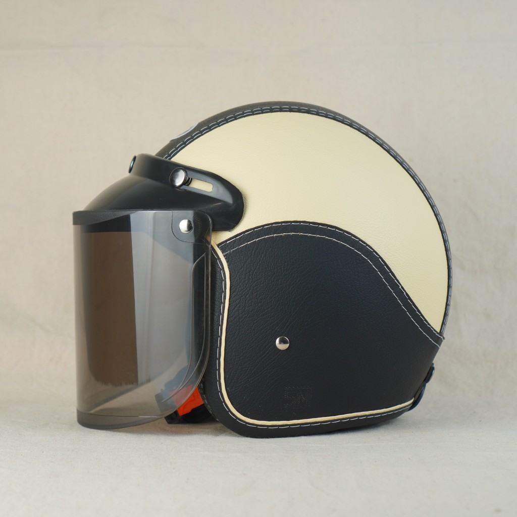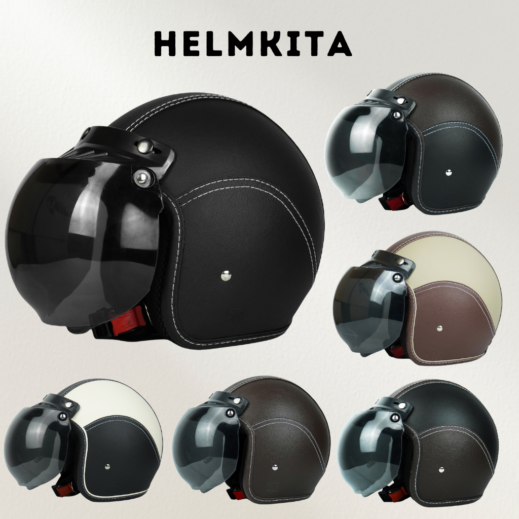 HELM BOGO KULIT FULL LEHER RETRO DEWASA SNI KACA CEMBUNG DATAR