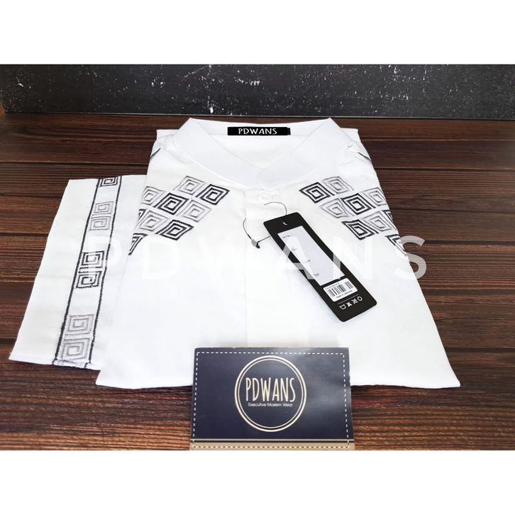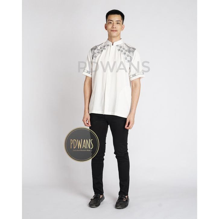 BAJU KOKO Muslim Lengan Pendek Putih Bordir PDWANS - ALS22 (FREE ONGKIR)