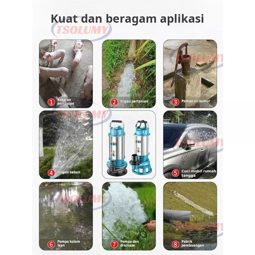 Pompa Celup Air Kotor WQD6-8 400W Stainless Steel Submersible 1.5 Inch Untuk Kolam & Limbah