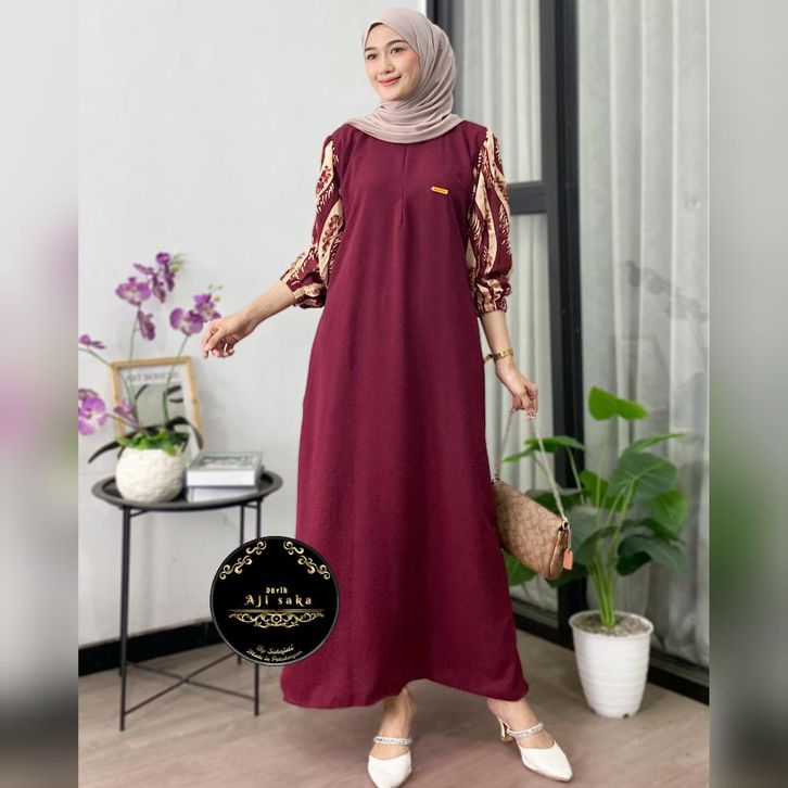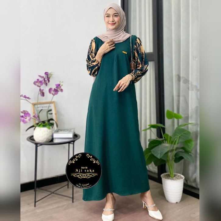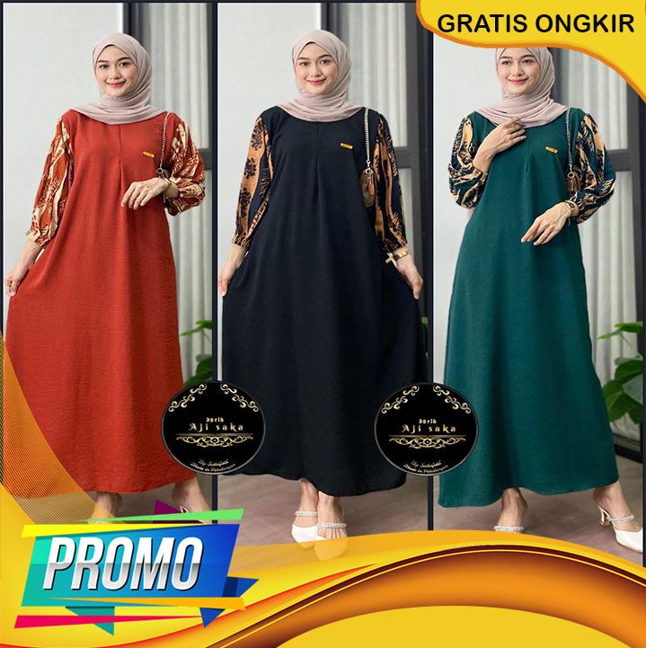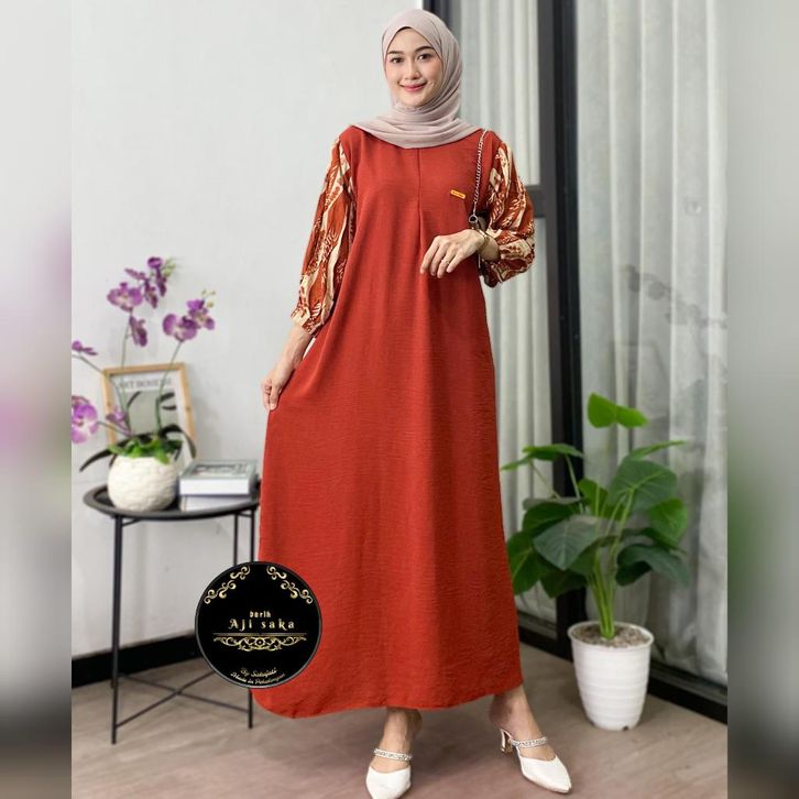 BARU+ Aisyah Dress Gamis Cringkle Airflow Kombinasi Ld 120 Pb 130 Resleting Depan Busui friendly
