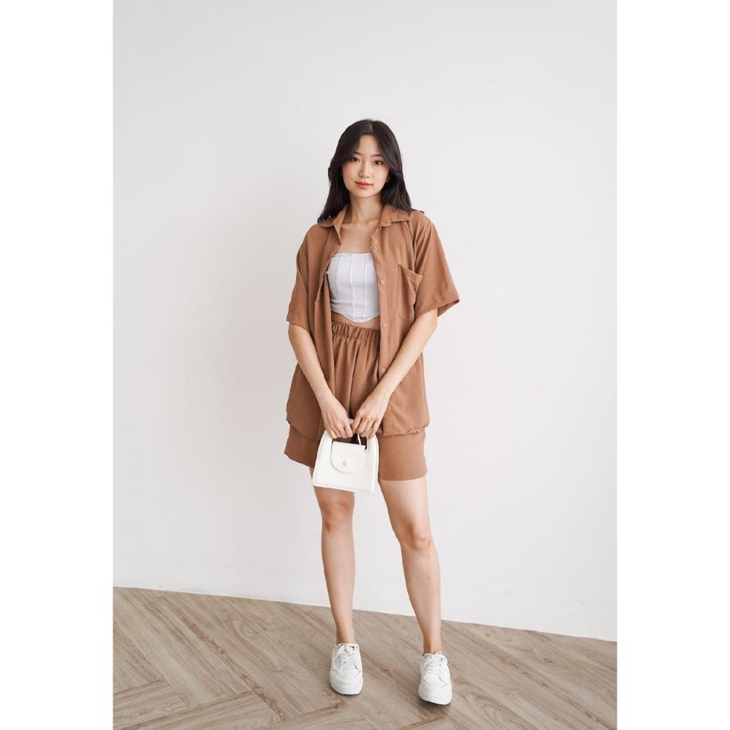 SETELAN KEMEJA + HOTPANS / SET KORA / SETELAN WANITA KOREAN STYLE CEY KRINKLE PREMIUM